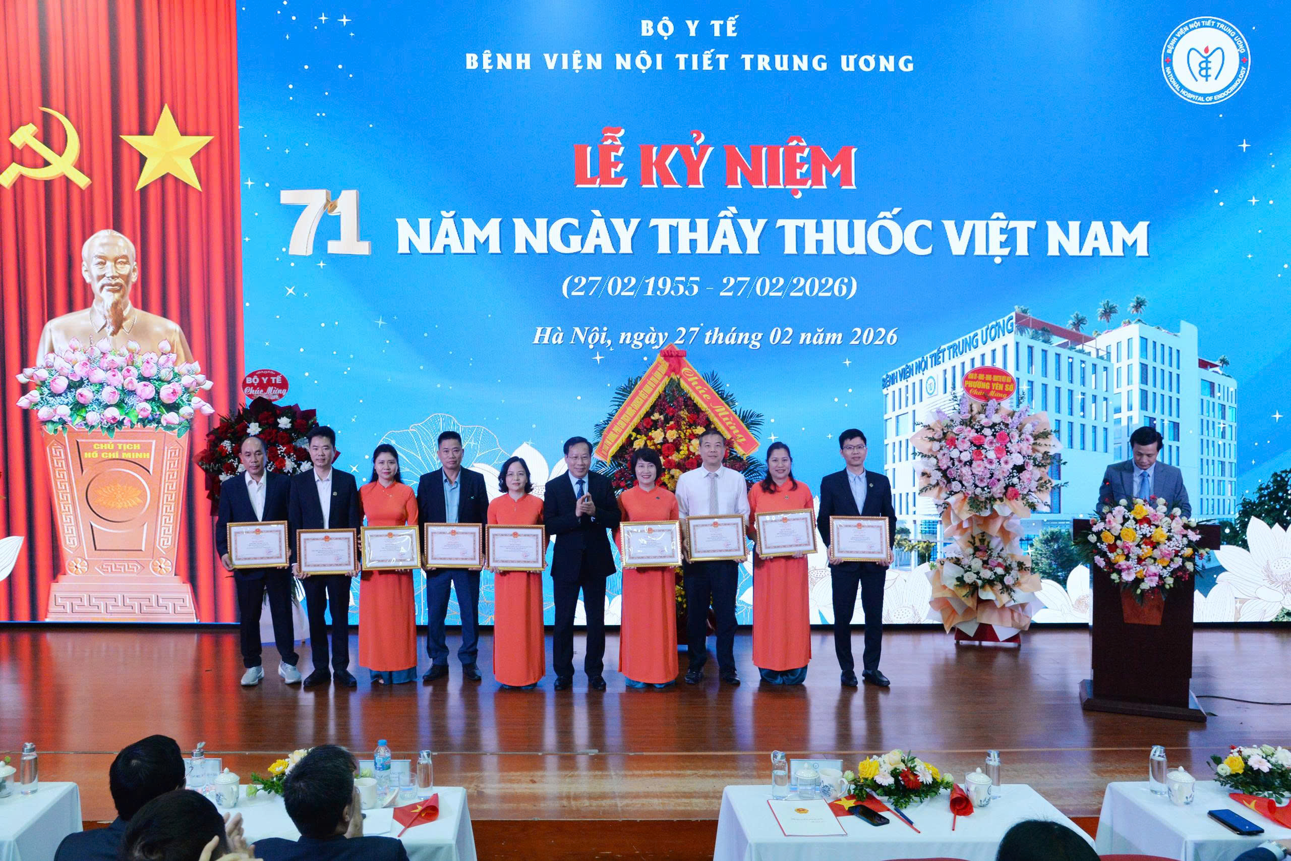 Trong khuôn khổ chương trình, đại diện Bộ Y tế đã công bố quyết định và trao tặng Bằng khen của Thủ tướng Chính phủ và Bộ Y tế cho các tập thể, cá nhân có thành tích xuất sắc trong công tác, góp phần khẳng định vị thế và uy tín của Bệnh viện Nội tiết Trung ương là cơ sở chuyên khoa đầu ngành về nội tiết và rối loạn chuyển hóa.