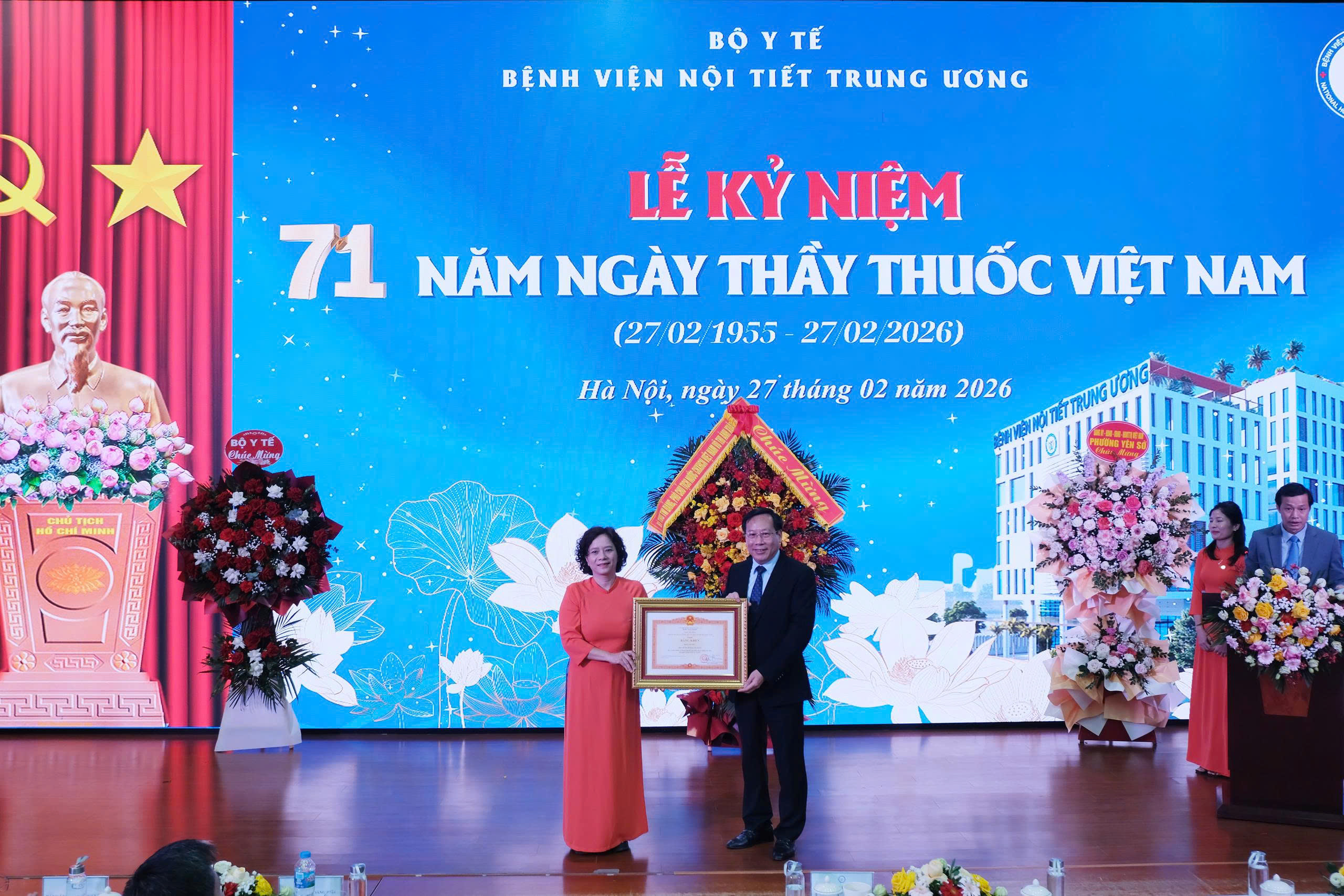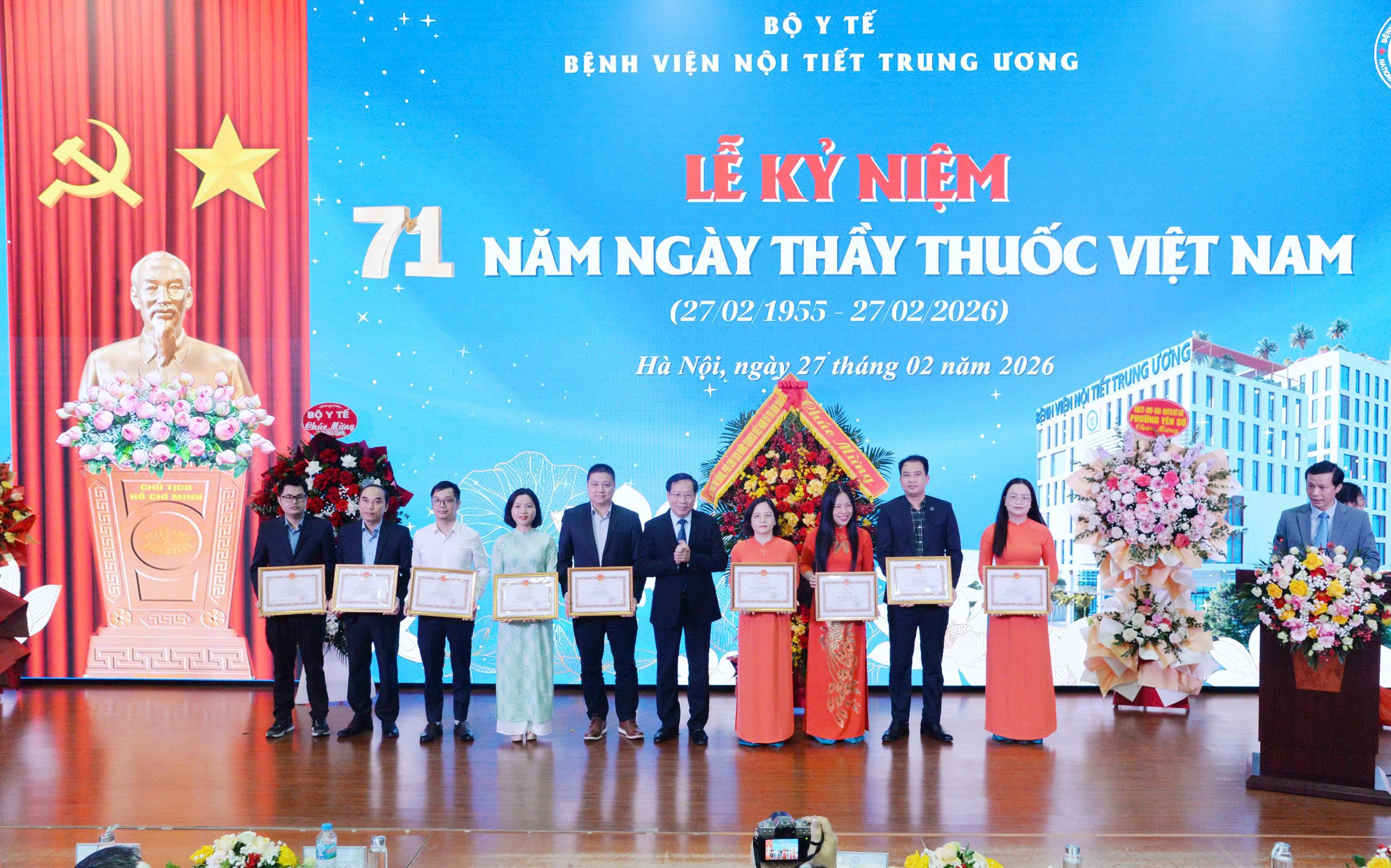 Sáng ngày 27/02/2026, Bệnh viện Nội tiết Trung ương long trọng tổ chức Lễ mít tinh kỷ niệm 71 năm Ngày Thầy thuốc Việt Nam (27/02/1955 – 27/02/2026). Buổi lễ là dịp ôn lại truyền thống vẻ vang của ngành Y tế, tri ân những đóng góp to lớn của các thế hệ thầy thuốc, đồng thời tiếp thêm động lực để đội ngũ cán bộ, viên chức, người lao động bệnh viện tiếp tục nỗ lực vì sự nghiệp chăm sóc và bảo vệ sức khỏe nhân dân.