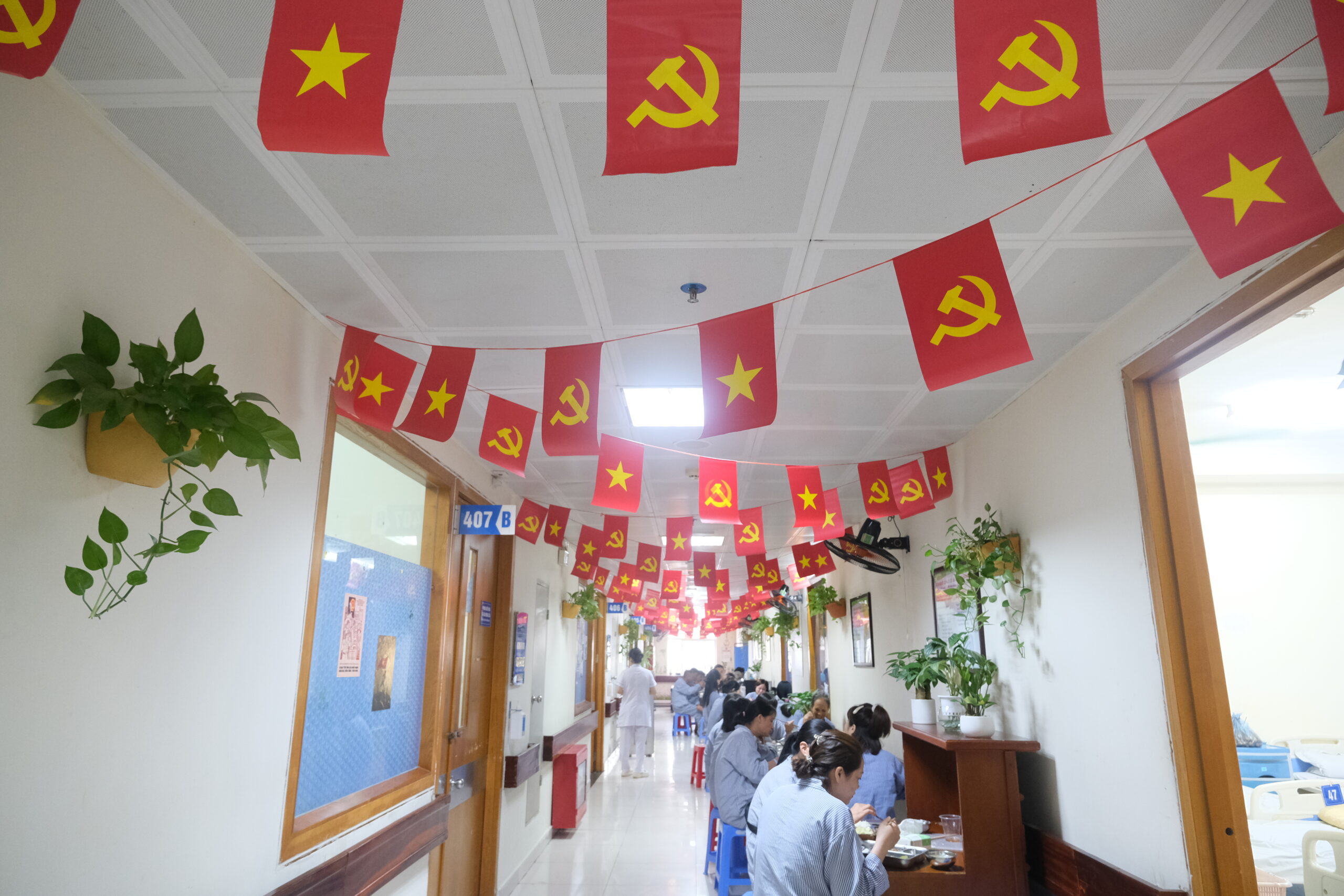 Với các người bệnh phải đón Tết Độc lập tại bệnh viện, niềm vui không chỉ đến từ sự quan tâm chăm sóc tận tình của đội ngũ y tế, mà còn từ chính bầu không khí lễ hội đang lan tỏa khắp nơi. Đó là những lá cờ đỏ sao vàng trên mỗi ô cửa, là sự kết nối thiêng liêng giữa quá khứ hào hùng của dân tộc và hiện tại đầy trách nhiệm của những người đang “chiến đấu” nơi mặt trận sức khỏe.