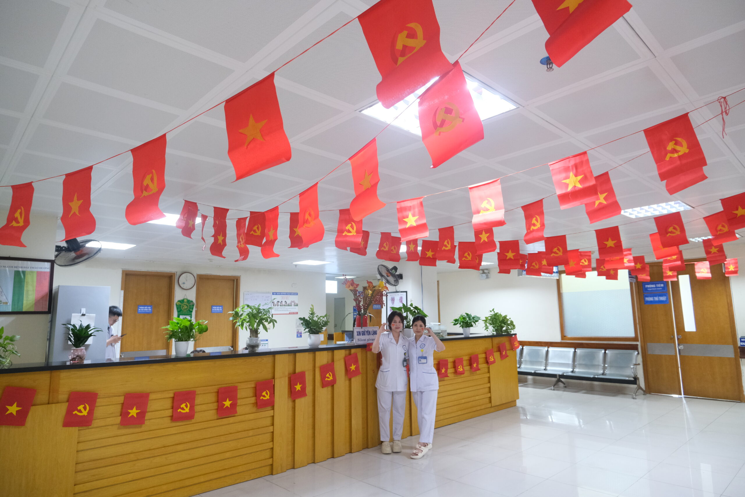 Các ngày vừa qua, từng dòng người ra vào bệnh viện đều có thể cảm nhận rõ nét tinh thần của ngày đại Lễ Quốc khánh. Bên cạnh đó các y bác sĩ, điều dưỡng và nhân viên y tế vẫn tất bật với công việc thường ngày, nhưng trên từng gương mặt đều ánh lên niềm tự hào dân tộc, xen lẫn sự tận tâm trong sứ mệnh chăm sóc sức khỏe nhân dân.