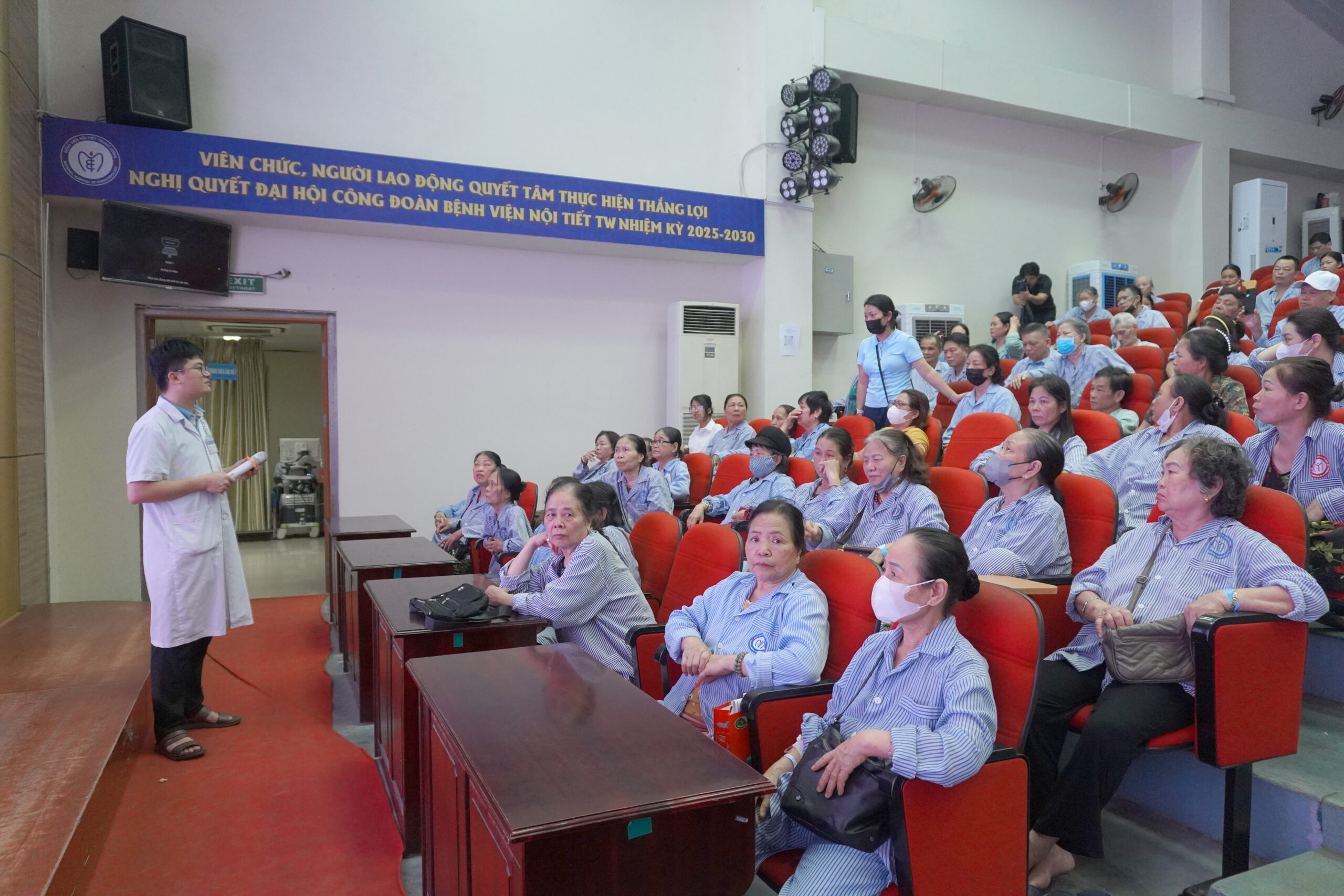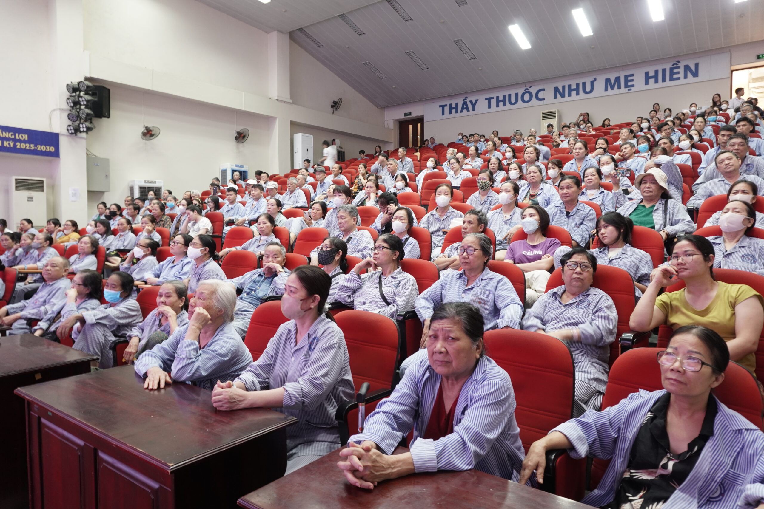 Song song với hoạt động khảo sát chuyên môn, điểm nhấn quan trọng của chuyến thăm là chương trình Giáo dục sức khỏe về bệnh võng mạc đái tháo đường diễn ra tại Hội trường lớn. Chương trình đã thu hút đông đảo bệnh nhân đang điều trị tại Bệnh viện tham dự, khẳng định nhu cầu cấp thiết về kiến thức phòng bệnh trong cộng đồng.
