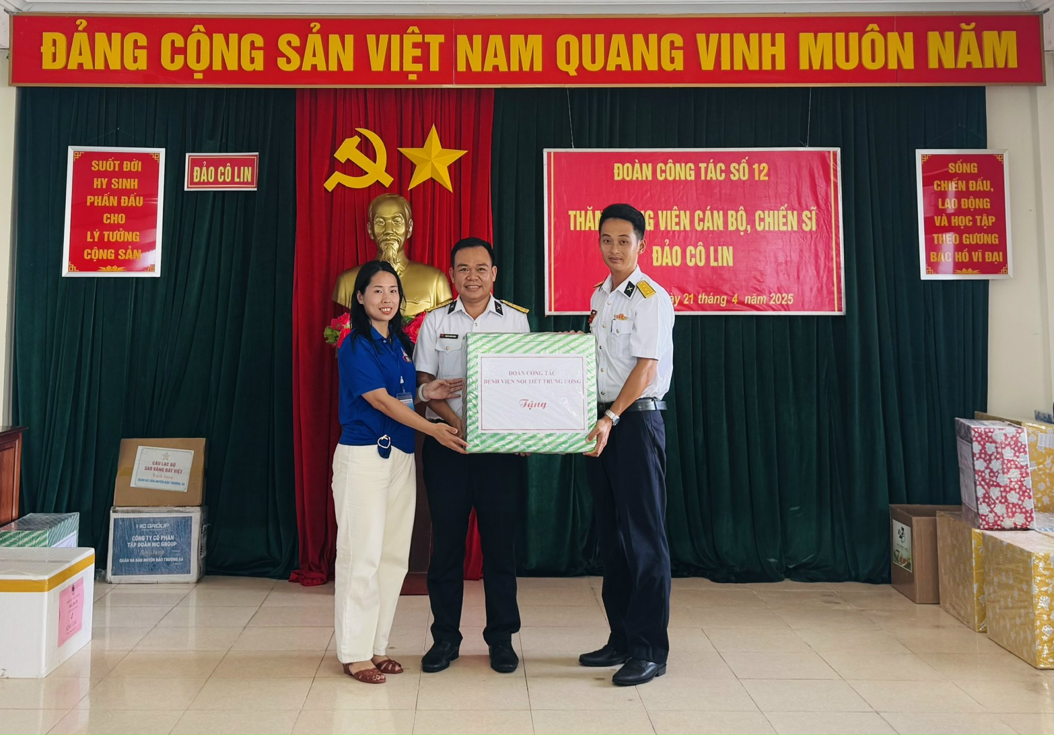 Tại mỗi điểm đến, đoàn công tác của Bệnh viện đã phối hợp cùng lực lượng quân y và các đơn vị chức năng tổ chức thăm khám, tư vấn sức khỏe, đặc biệt tập trung vào các bệnh lý nội tiết – chuyển hóa thường gặp trong môi trường đặc thù. Đồng thời, đoàn cũng trao tặng nhiều phần quà thiết thực nhằm động viên tinh thần và chia sẻ với các lực lượng đang làm nhiệm vụ nơi tuyến đầu bảo vệ chủ quyền biển đảo thiêng liêng của Tổ quốc.