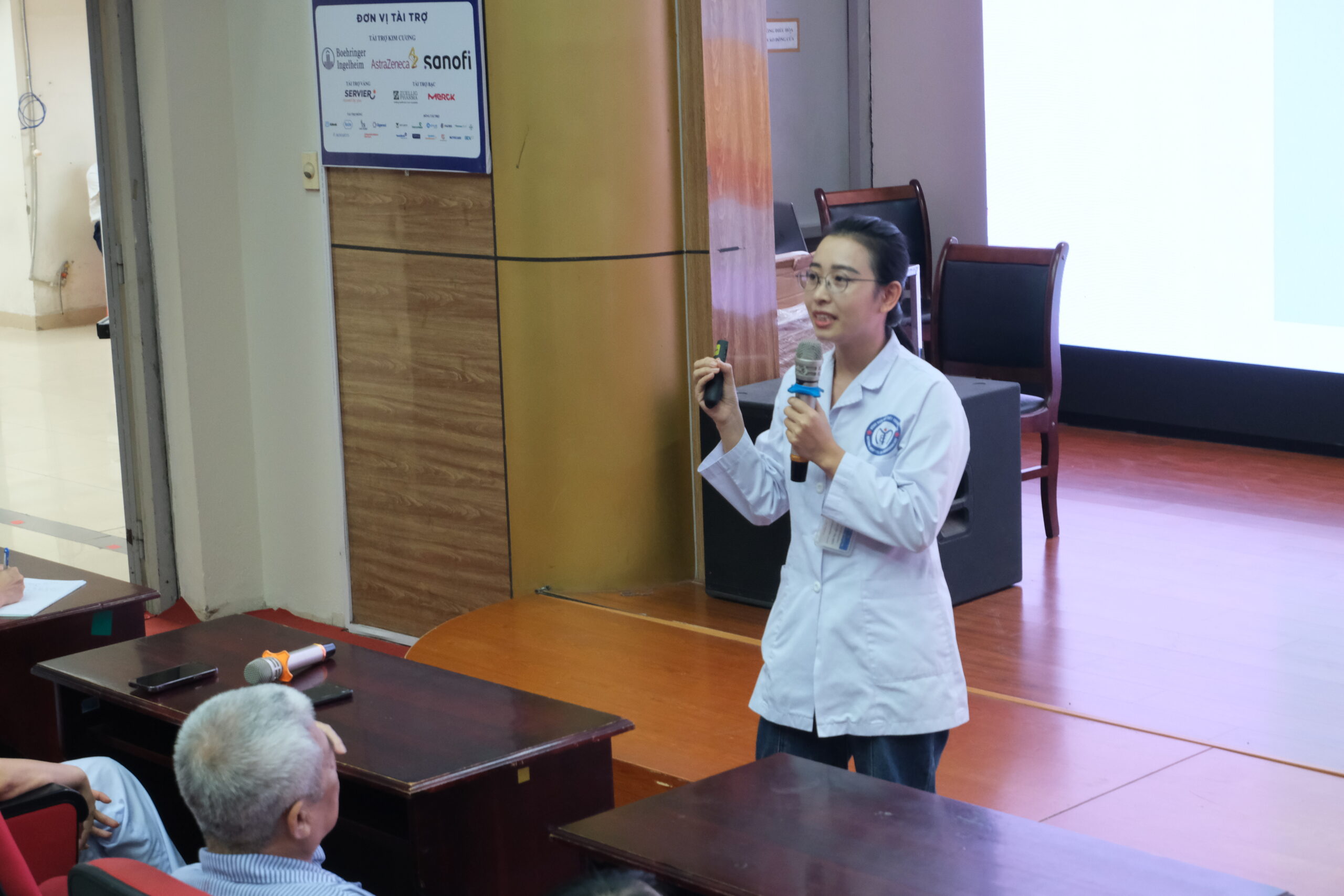 Đặc biệt, buổi học còn có phần hỏi – đáp trắc nghiệm tương tác, giúp người bệnh củng cố kiến thức dinh dưỡng qua các câu hỏi thực tế: số bữa ăn trong ngày, nhóm thực phẩm ảnh hưởng đến đường huyết, lựa chọn trái cây phù hợp, hay cách chế biến thực phẩm lành mạnh cho người đái tháo đường.