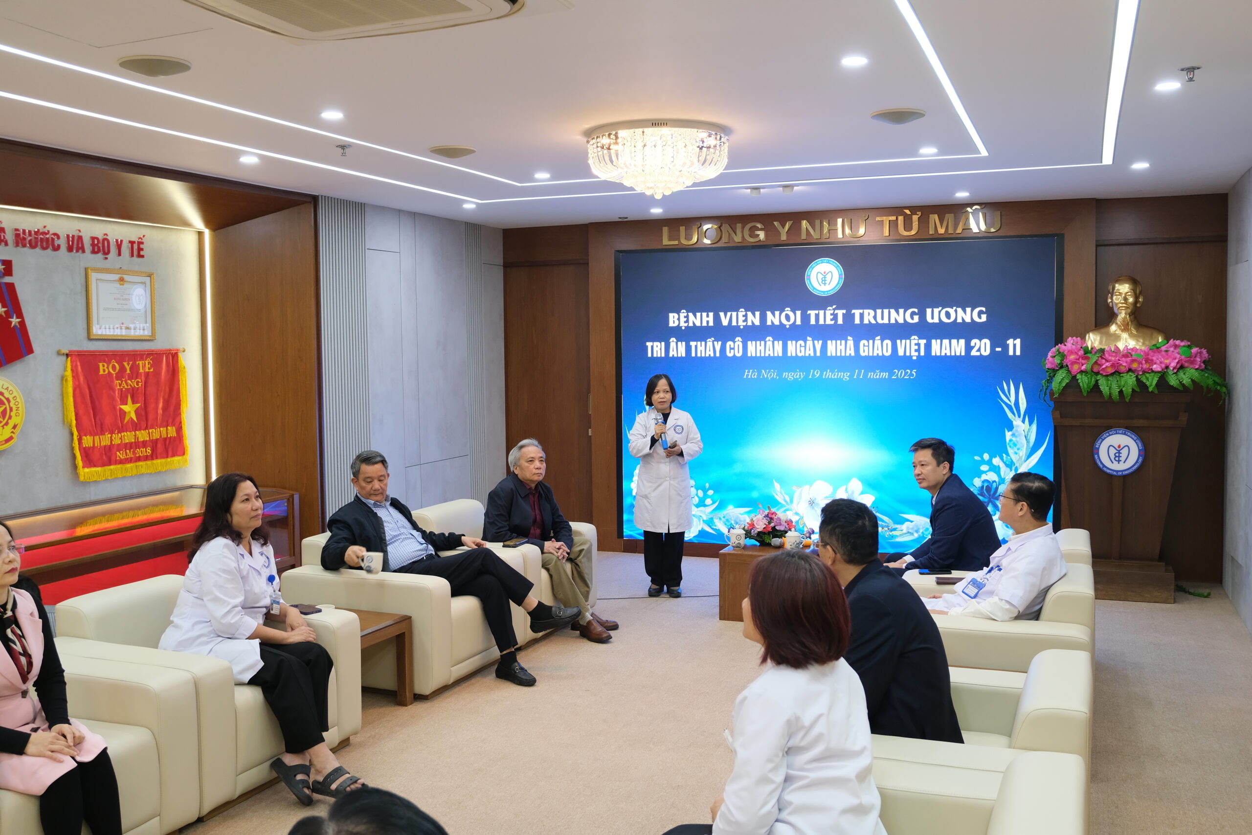 Tôi mong rằng, các Thầy/Cô sẽ luôn giữ vững ngọn lửa nhiệt huyết, luôn là tấm gương sáng để các thế hệ học trò phấn đấu và noi theo; luôn tận tâm giảng dạy, truyền lại những kiến thức, kinh nghiệm quý báu cho các bác sĩ, điều dưỡng trẻ, các bạn đồng nghiệp. Từ đó, hoàn thành tốt nhiệm vụ trên cả hai mặt trận y tế và giáo dục, xứng đáng được tôn vinh với hai chữ “Thầy thuốc – Thầy giáo”, góp phần đóng góp cho công tác bảo vệ và chăm sóc sức khoẻ nhân dân, đồng thời xây dựng Bệnh viện Nội tiết Trung ương ngày càng phát triển, vững mạnh.”