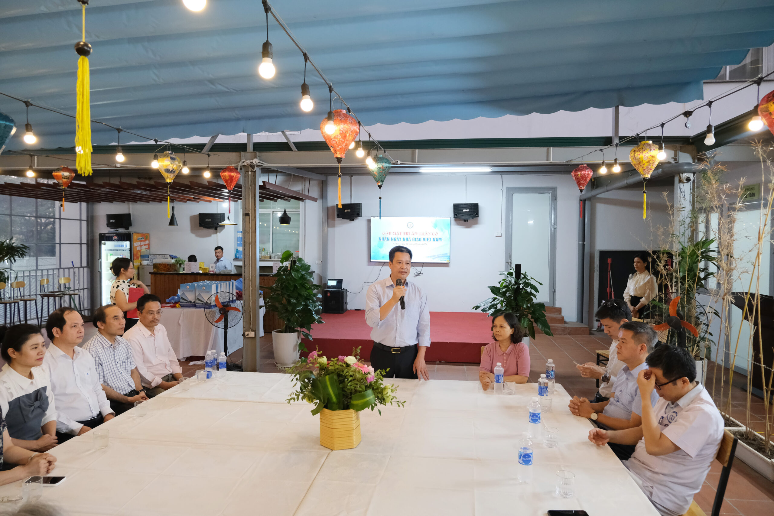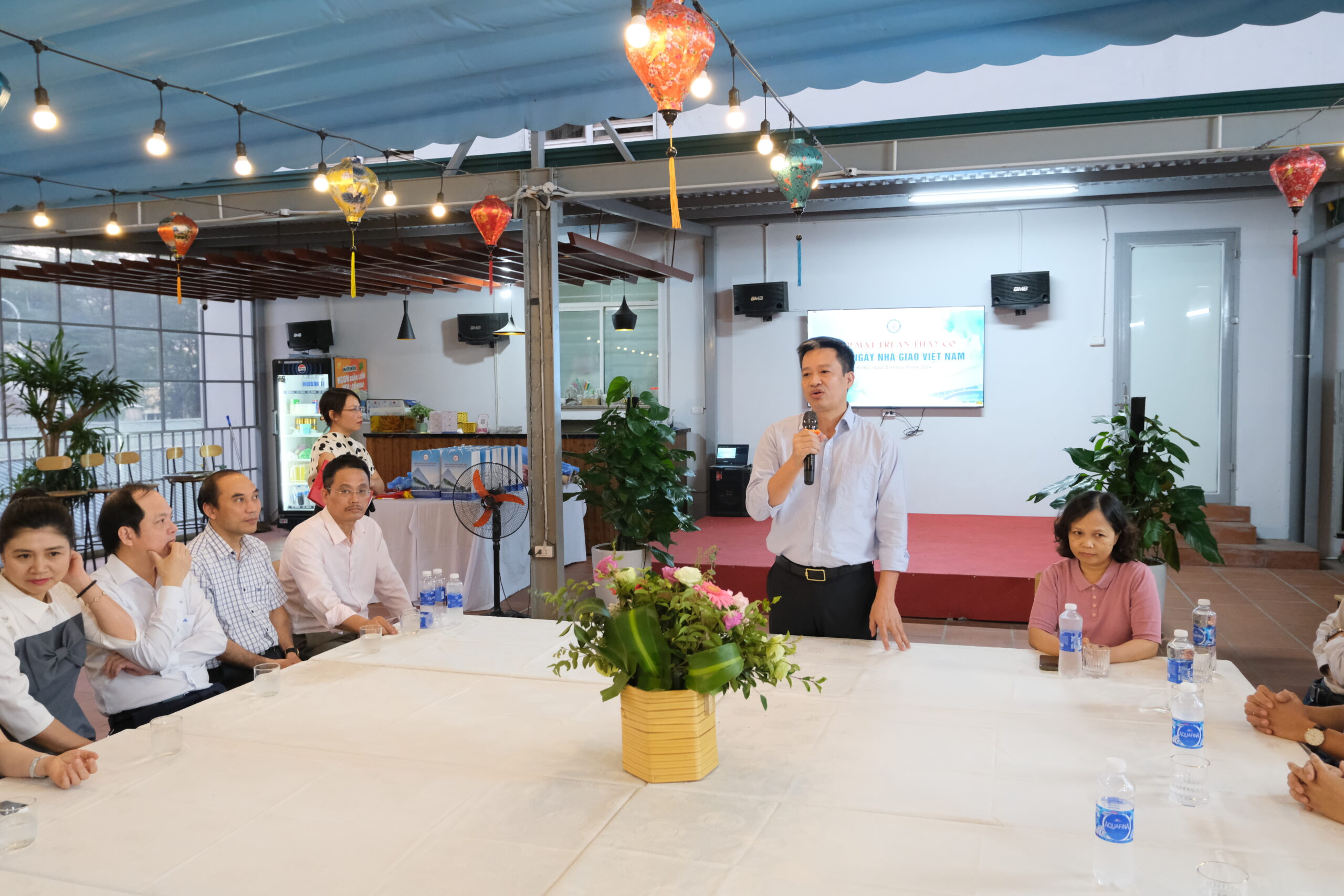 Trong không khí ấm áp, TS.BS Phan Hoàng Hiệp đã gửi lời chúc sức khỏe, lời tri ân chân thành tới các thầy giáo, cô giáo – giảng viên các khoa đã luôn đồng hành với công cuộc đào tạo, bồi dưỡng nhân lực vào sự phát triển ngày càng phồn thịnh của Bệnh viện.