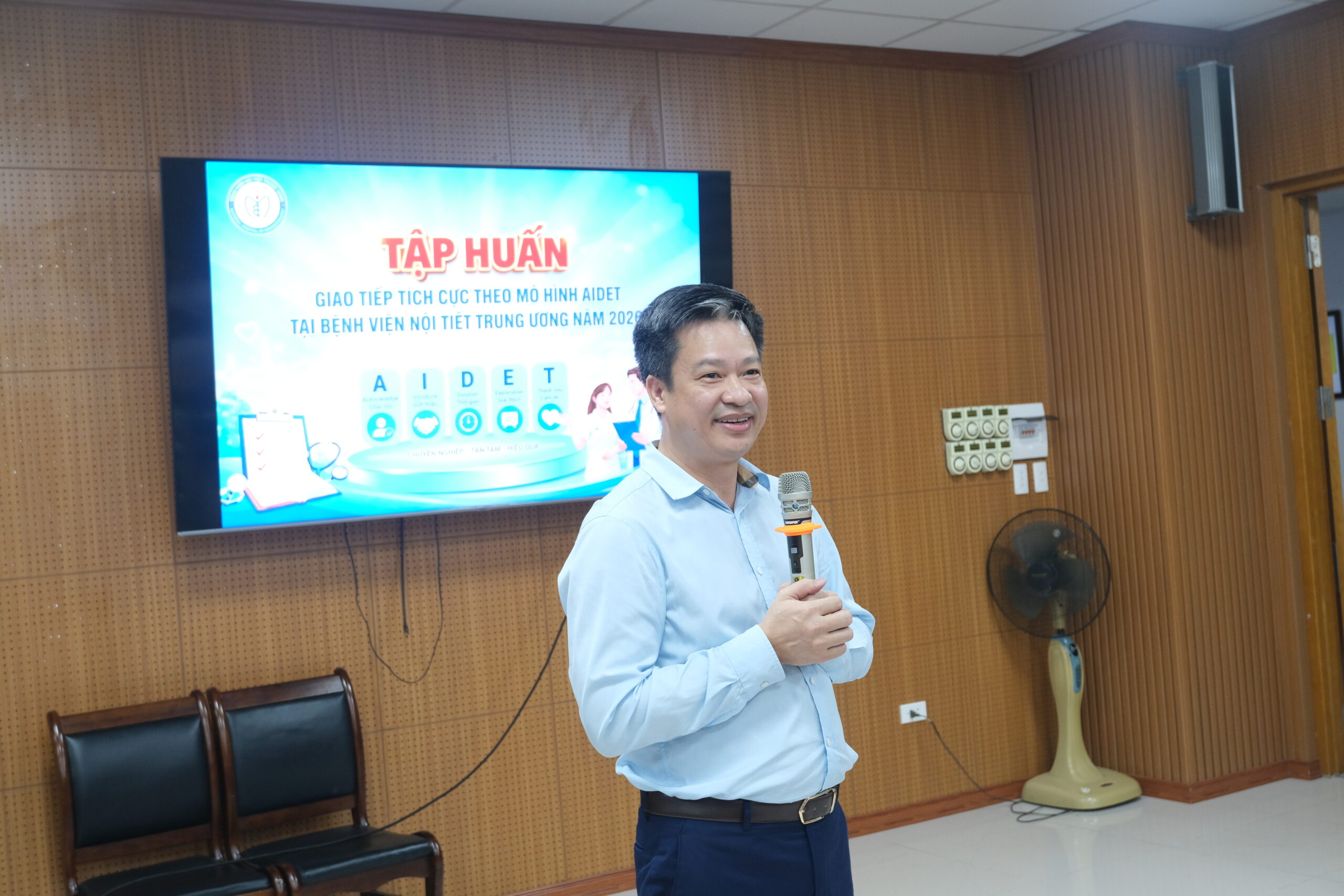 Phát biểu về ý nghĩa của chương trình, TTƯT.TS.BS Phan Hoàng Hiệp, Giám đốc Bệnh viện Nội tiết Trung ương, nhấn mạnh: “Giao tiếp không chỉ là kỹ năng mà còn là nền tảng tạo nên niềm tin giữa người bệnh và nhân viên y tế. Việc triển khai mô hình AIDET là bước đi quan trọng trong chiến lược nâng cao chất lượng dịch vụ của bệnh viện. Chúng tôi mong muốn mỗi cán bộ, nhân viên không chỉ giỏi chuyên môn mà còn chuyên nghiệp trong ứng xử, tận tâm trong phục vụ, từ đó mang lại trải nghiệm tốt nhất cho người bệnh, đối tác và đồng nghiệp”.