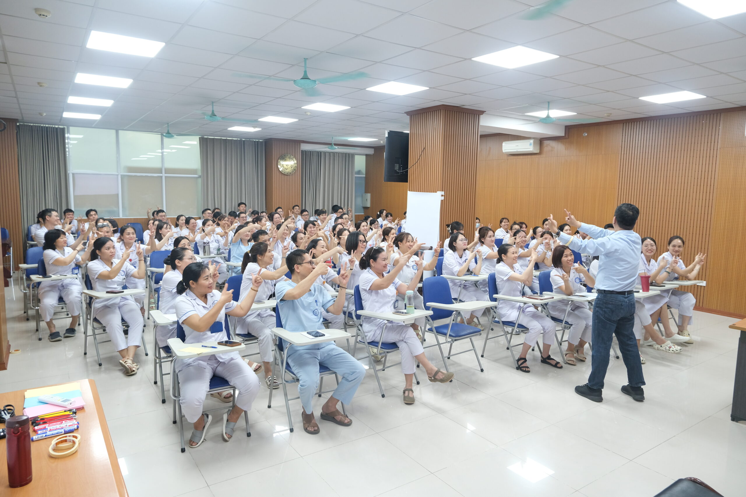 Bên cạnh việc trang bị kiến thức, khóa tập huấn còn chú trọng đến thay đổi thái độ và rèn luyện kỹ năng thực hành. Học viên được hướng dẫn cách quản lý cảm xúc, lắng nghe tích cực, thấu cảm và phản hồi hiệu quả trong các tình huống thực tế. Đồng thời, mỗi cá nhân cũng được khuyến khích xây dựng hình ảnh chuyên nghiệp, tác phong chuẩn mực, góp phần lan tỏa văn hóa phục vụ tận tâm trong toàn bệnh viện.
