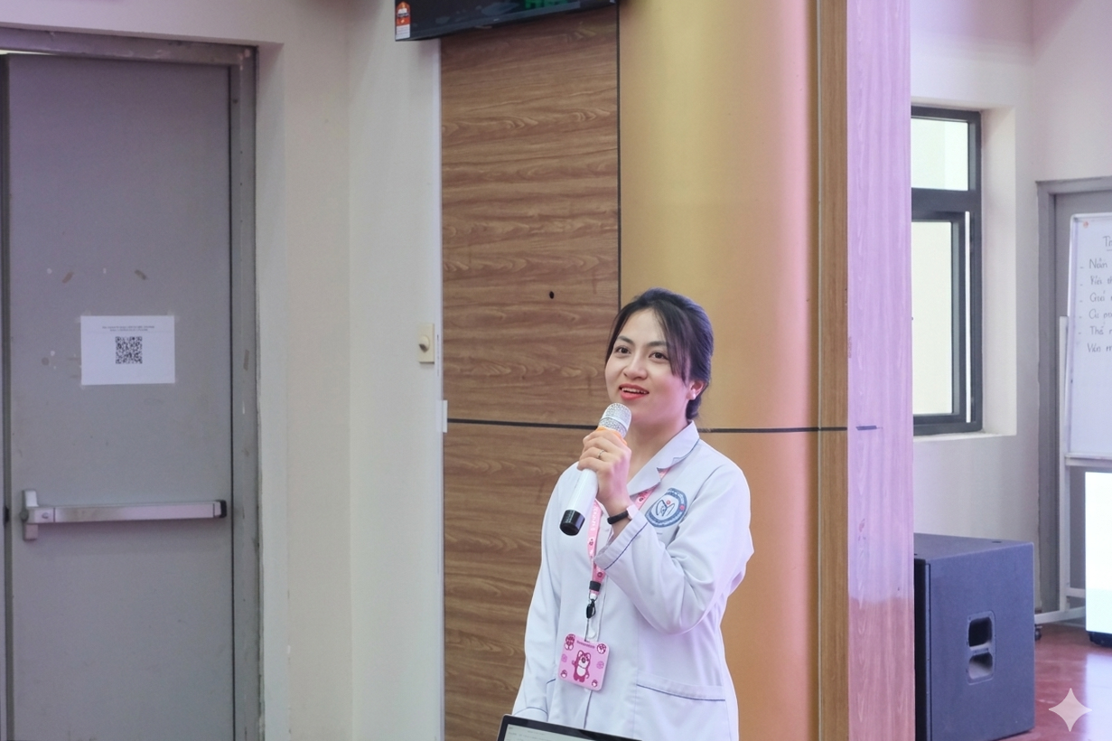Tiếp theo, điều dưỡng Nguyễn Thị Thanh Thủy – Khoa Y học cổ truyền đã trình bày kế hoạch chăm sóc cho một trường hợp người bệnh bị viêm quanh khớp vai kèm đái tháo đường đang điều trị tại bệnh viện. Trong quá trình chăm sóc, điều dưỡng tập trung theo dõi tình trạng đau của người bệnh, hỗ trợ trong sinh hoạt, đồng thời hướng dẫn các bài tập vận động khớp vai đơn giản để cải thiện tầm vận động và hạn chế nguy cơ cứng khớp. Bên cạnh đó, việc theo dõi và kiểm soát đường huyết cũng được chú trọng nhằm hỗ trợ quá trình điều trị đạt hiệu quả tốt hơn.