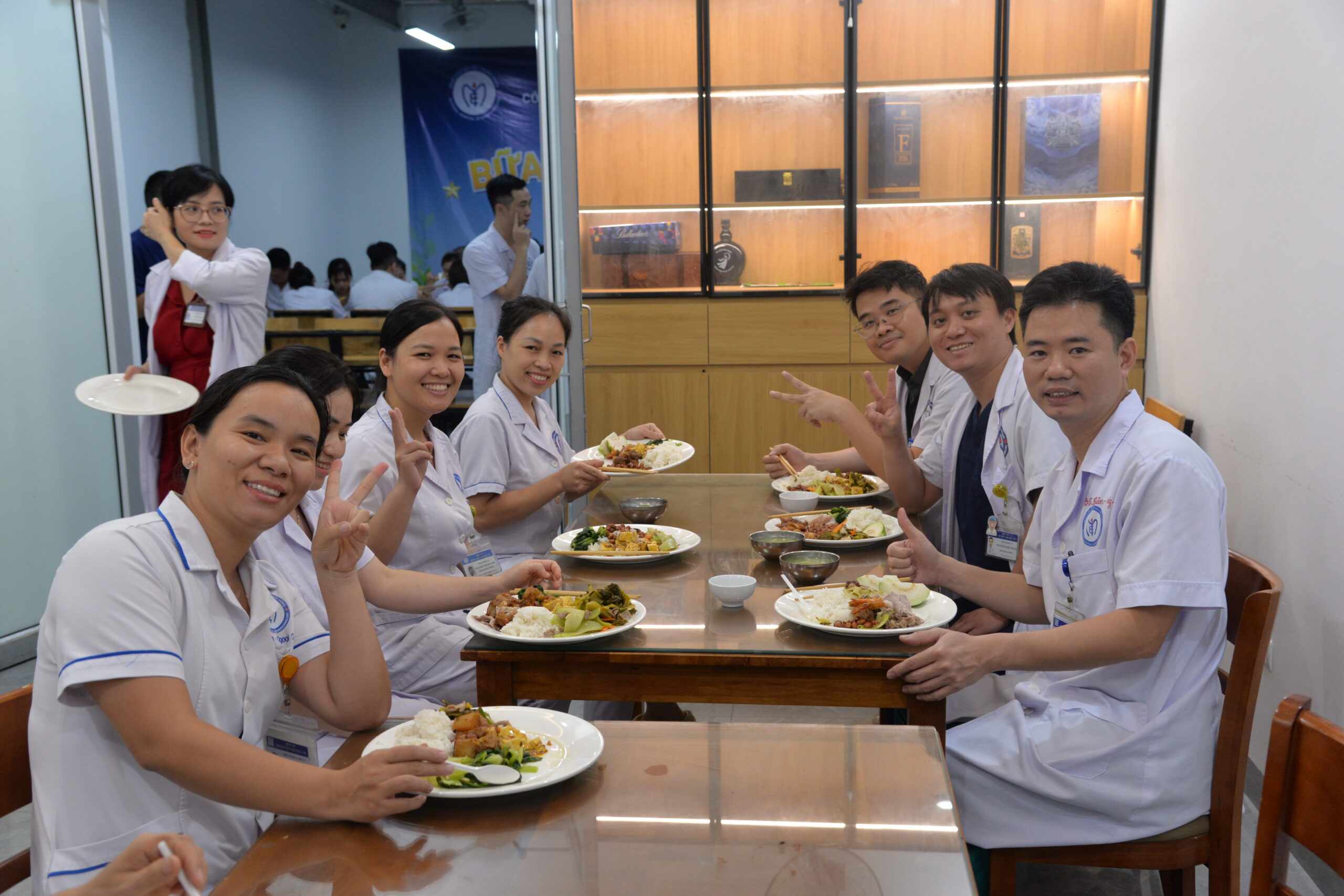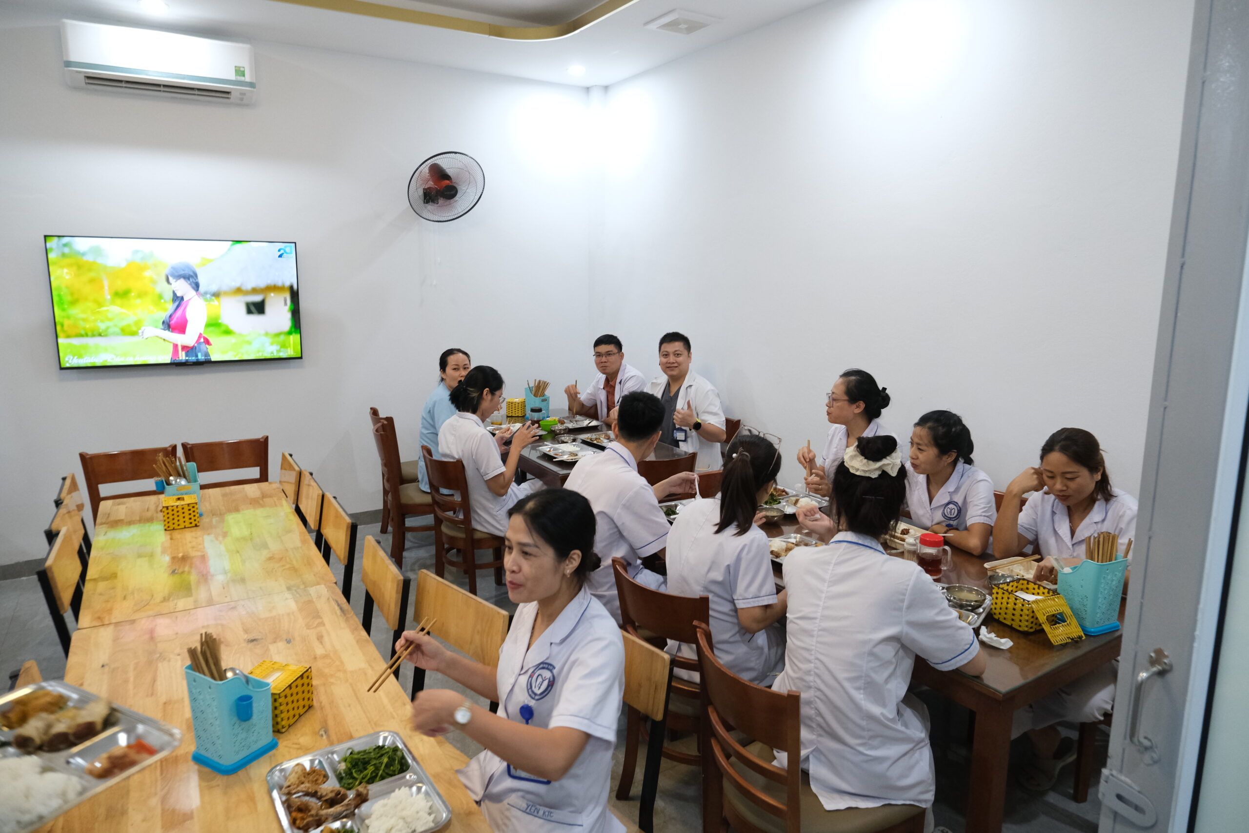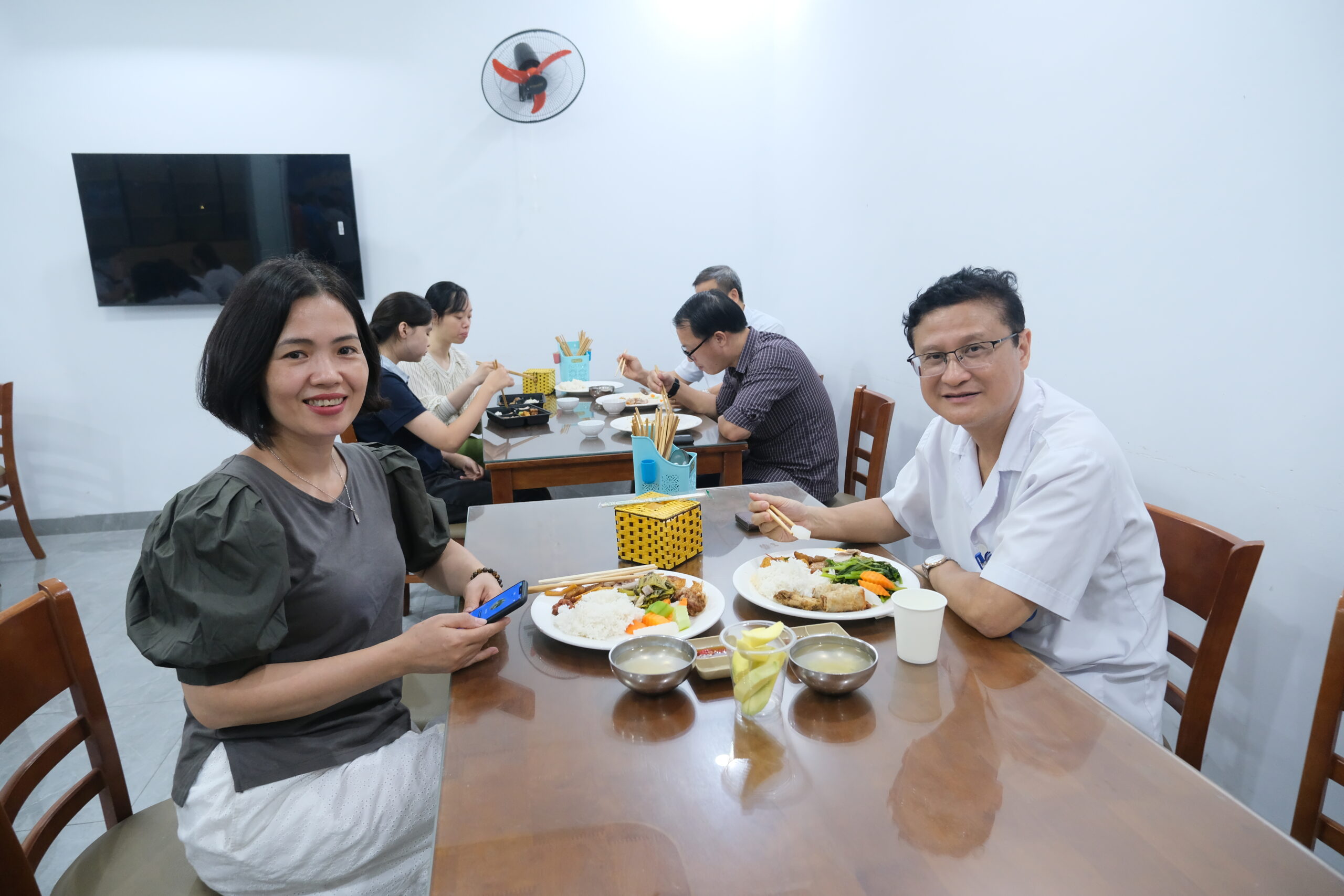 BS.CKII Nguyễn Thái Hoàng – Phụ trách khoa Điều trị kỹ thuật cao, chia sẻ: “Công việc ở Bệnh viện rất bận, nhiều khi chúng tôi trong Khoa không có thời gian ngồi ăn cùng nhau. Bữa cơm Công đoàn thực sự là một cơ hội để mọi người có thời gian gặp gỡ, hỏi thăm nhau.”