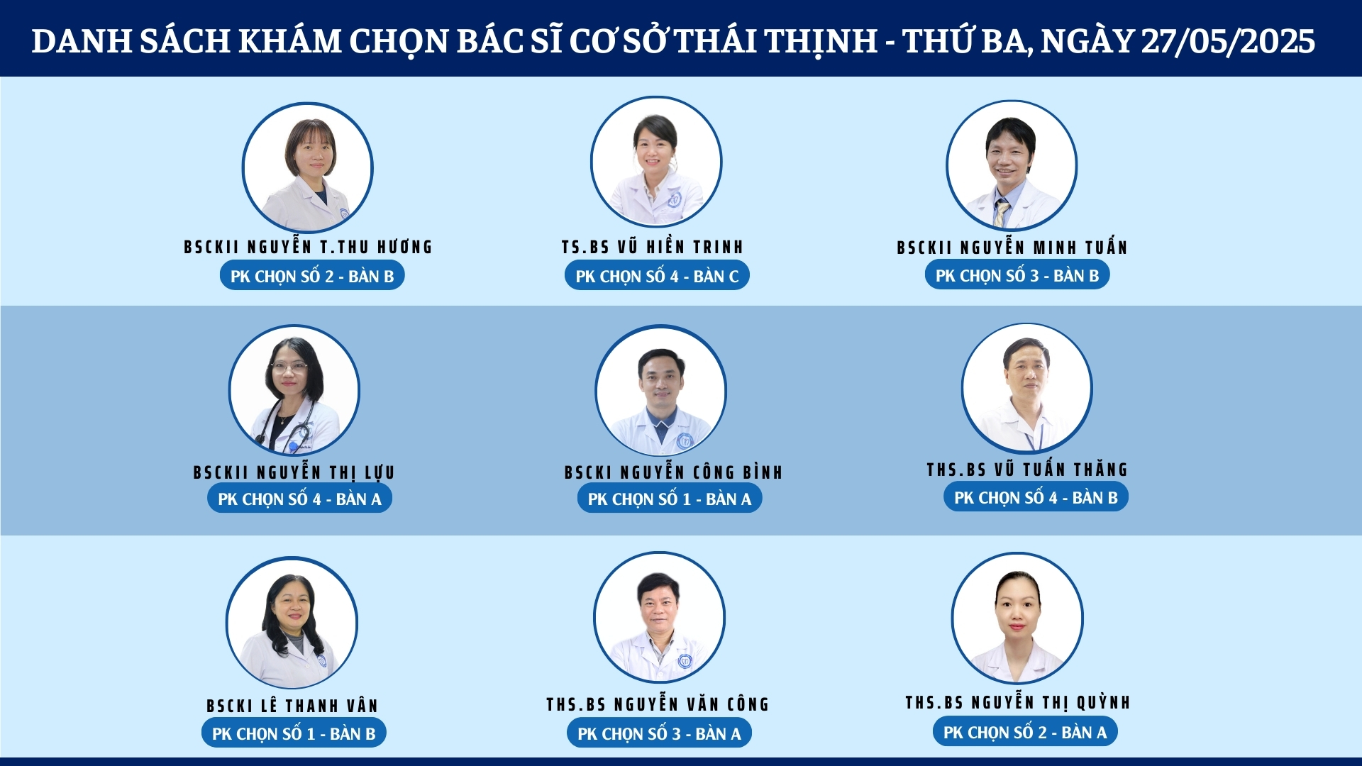 CẬP NHẬT DANH SÁCH DỊCH VỤ BÁC SĨ KHÁM CHỌN TẠI 2 CƠ SỞ TỨ HIỆP VÀ THÁI THỊNH