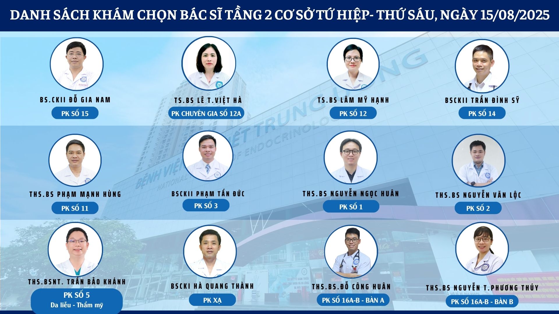 CẬP NHẬT DANH SÁCH DỊCH VỤ BÁC SĨ KHÁM CHỌN TẠI 2 CƠ SỞ TỨ HIỆP VÀ THÁI THỊNH