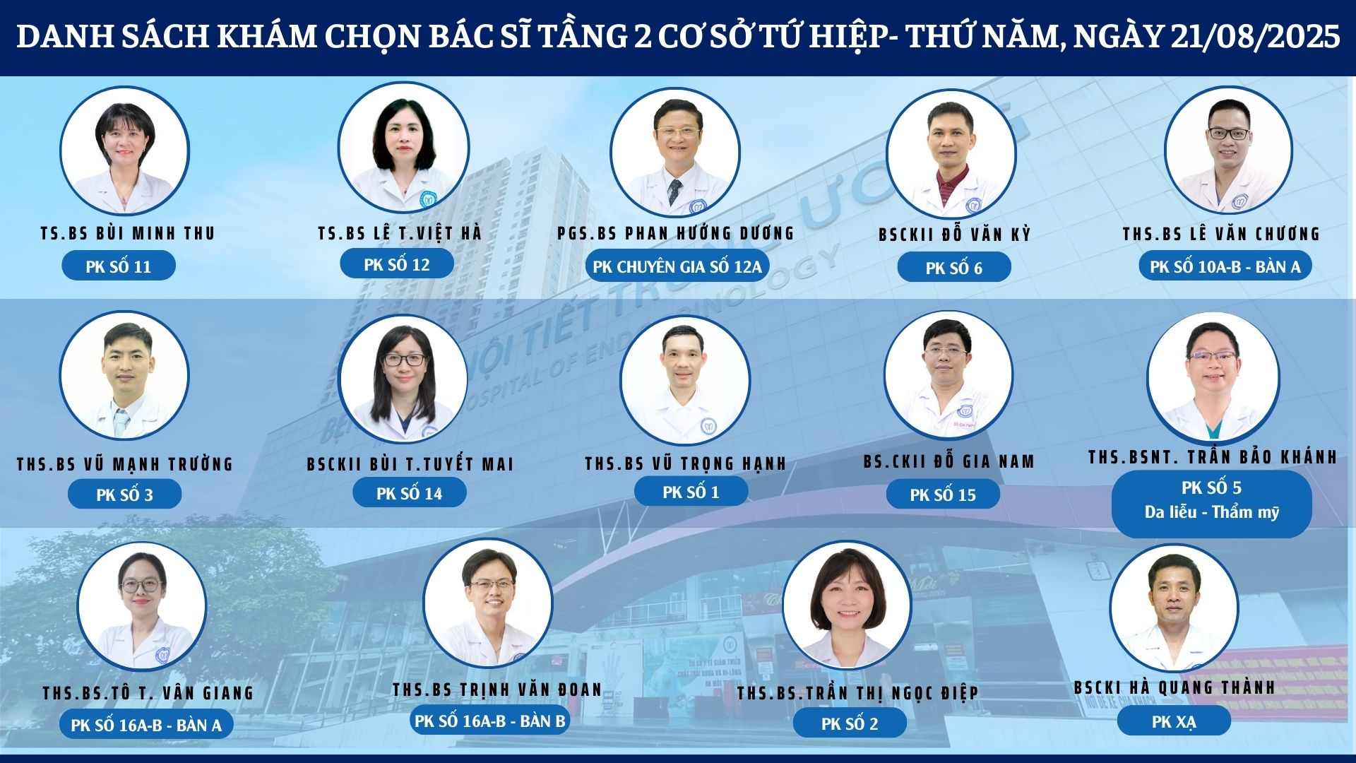 CẬP NHẬT DANH SÁCH DỊCH VỤ BÁC SĨ KHÁM CHỌN TẠI 2 CƠ SỞ TỨ HIỆP VÀ THÁI THỊNH
