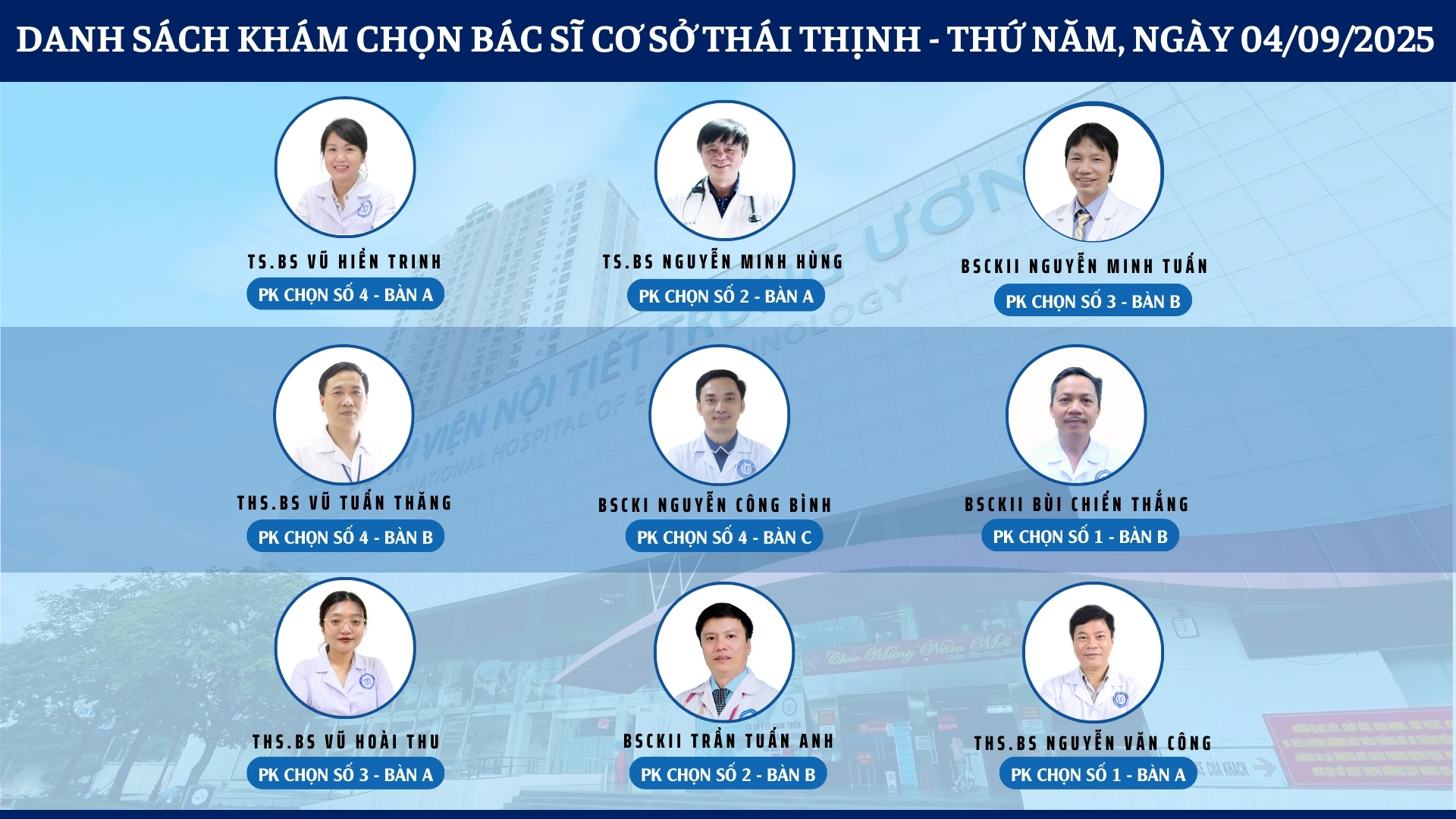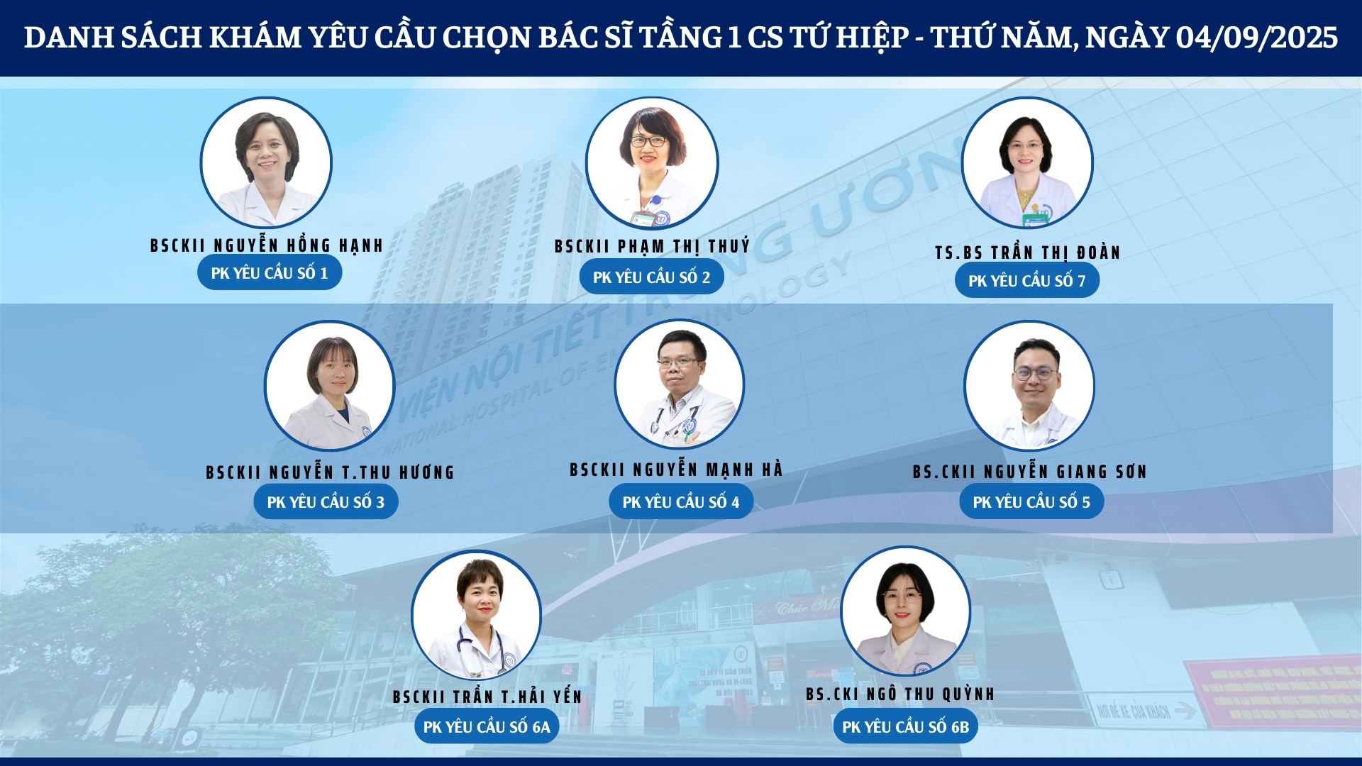 CẬP NHẬT DANH SÁCH DỊCH VỤ BÁC SĨ KHÁM CHỌN TẠI 2 CƠ SỞ TỨ HIỆP VÀ THÁI THỊNH