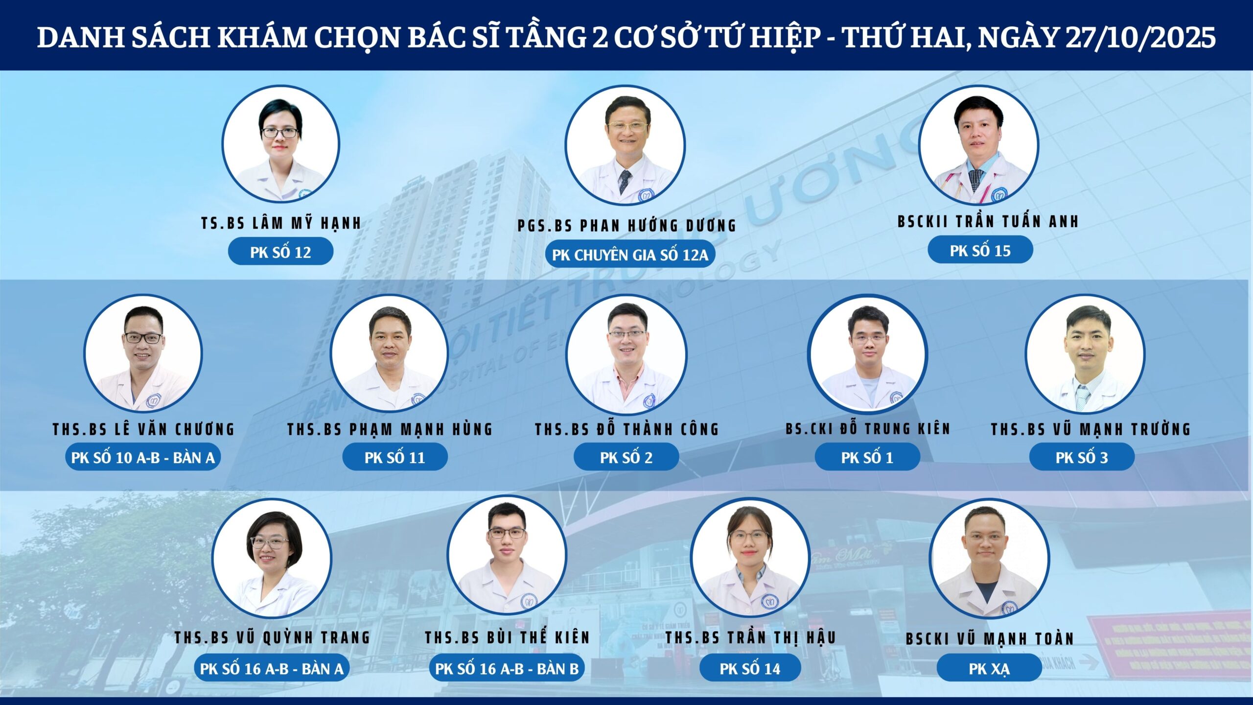 CẬP NHẬT DANH SÁCH DỊCH VỤ BÁC SĨ KHÁM CHỌN TẠI 2 CƠ SỞ TỨ HIỆP VÀ THÁI THỊNH