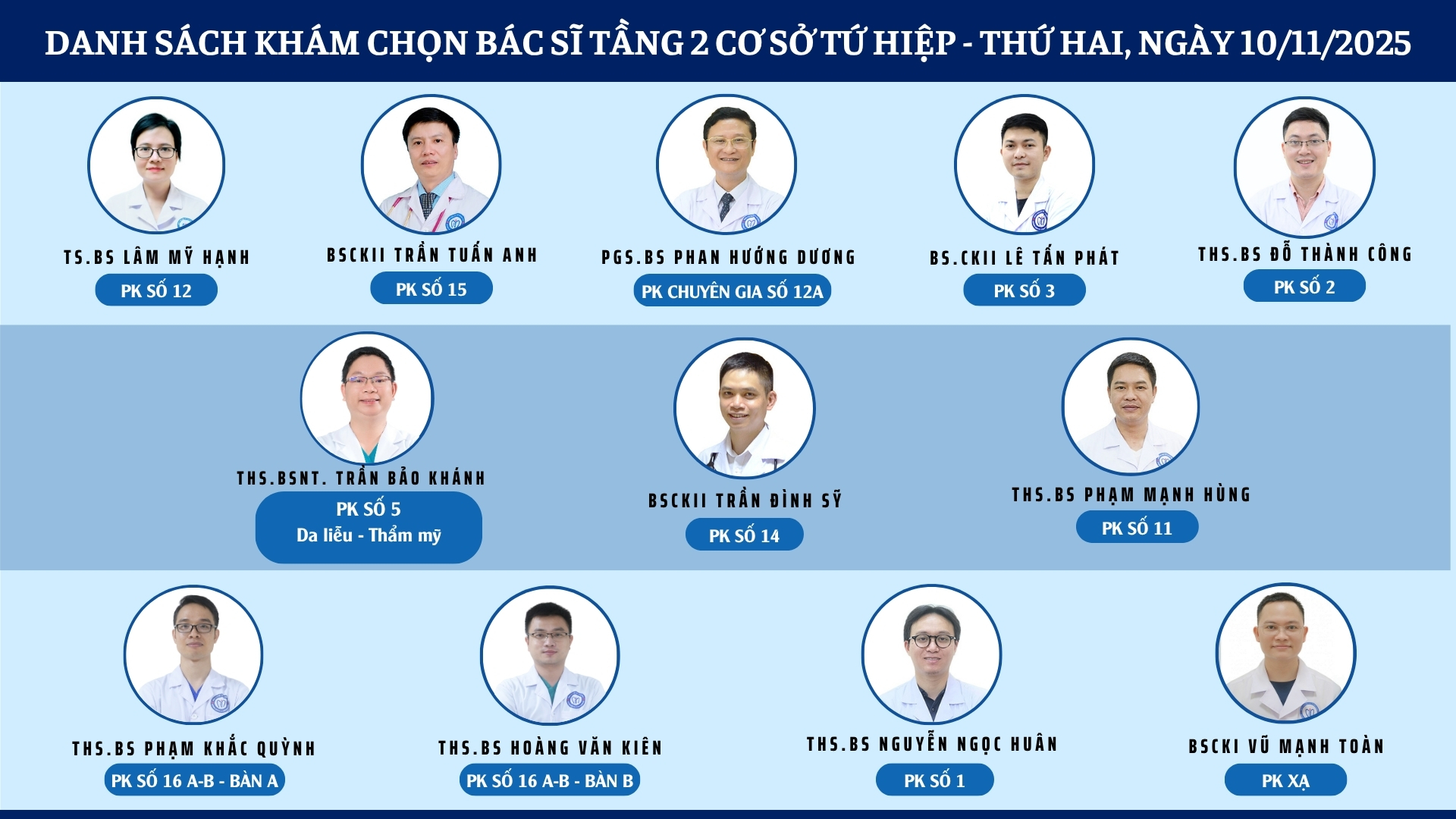 CẬP NHẬT DANH SÁCH DỊCH VỤ BÁC SĨ KHÁM CHỌN TẠI 2 CƠ SỞ TỨ HIỆP VÀ THÁI THỊNH