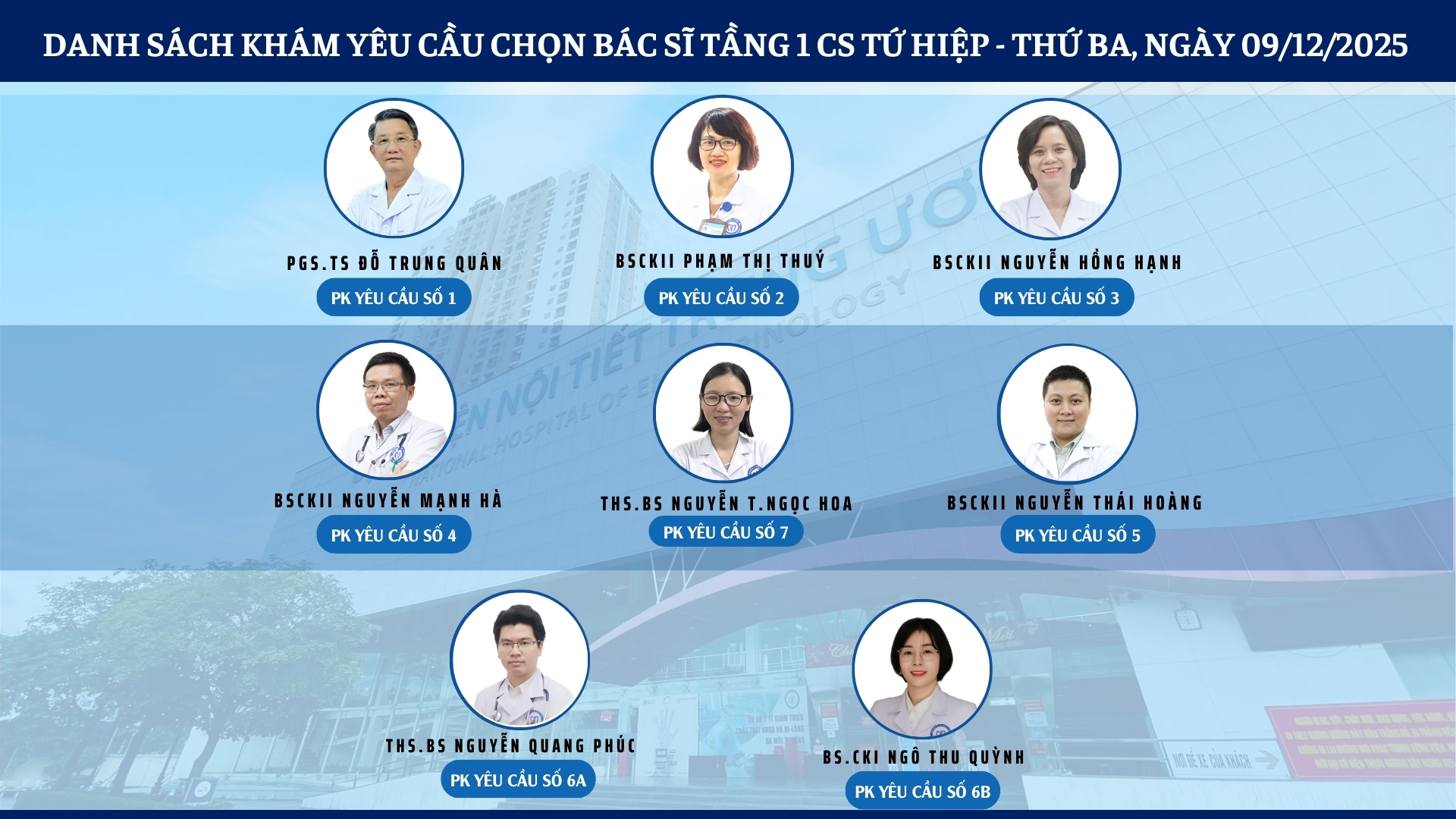 CẬP NHẬT DANH SÁCH DỊCH VỤ BÁC SĨ KHÁM CHỌN TẠI 2 CƠ SỞ TỨ HIỆP VÀ THÁI THỊNH