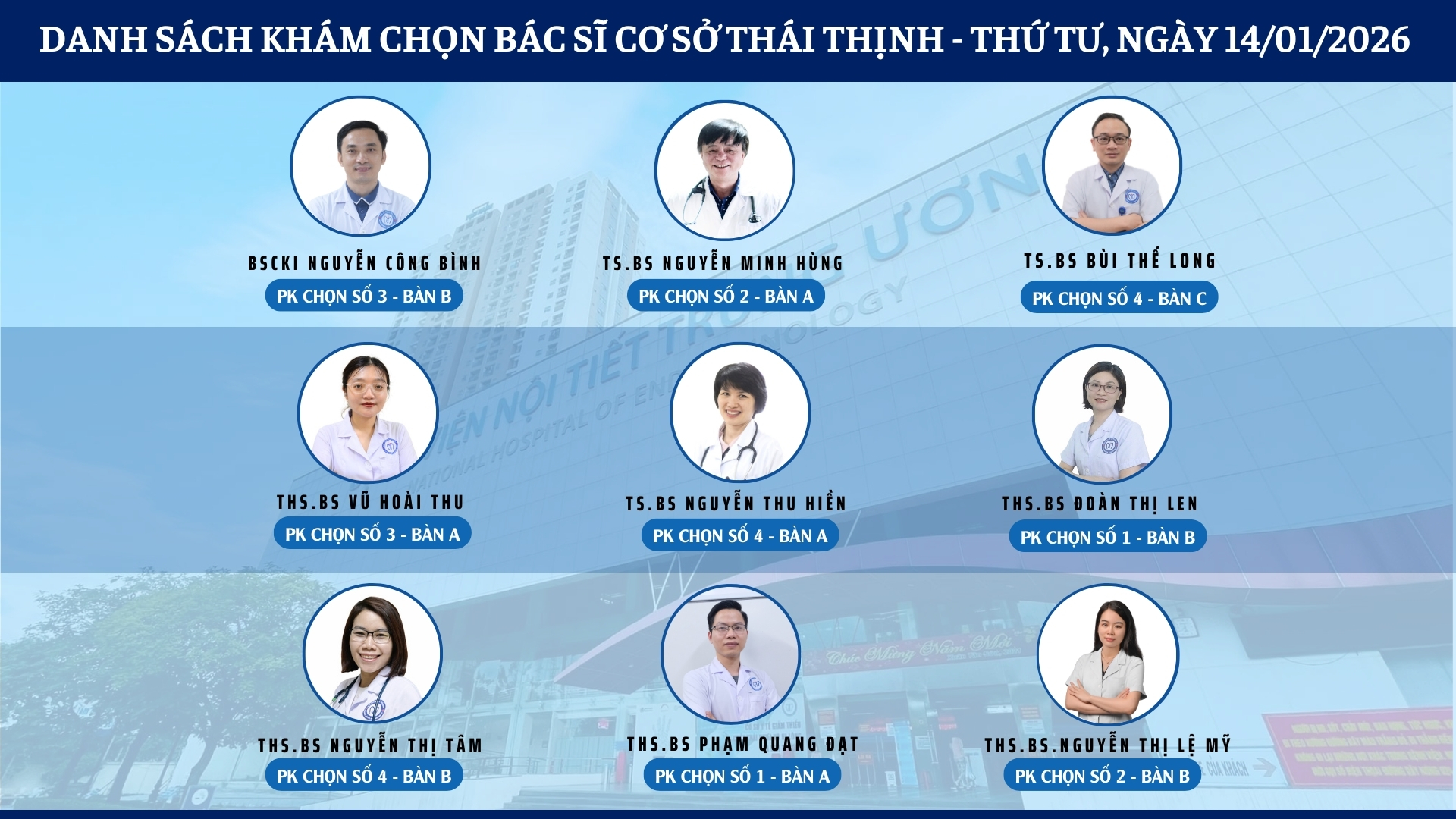 CẬP NHẬT DANH SÁCH DỊCH VỤ BÁC SĨ KHÁM CHỌN TẠI 2 CƠ SỞ TỨ HIỆP VÀ THÁI THỊNH