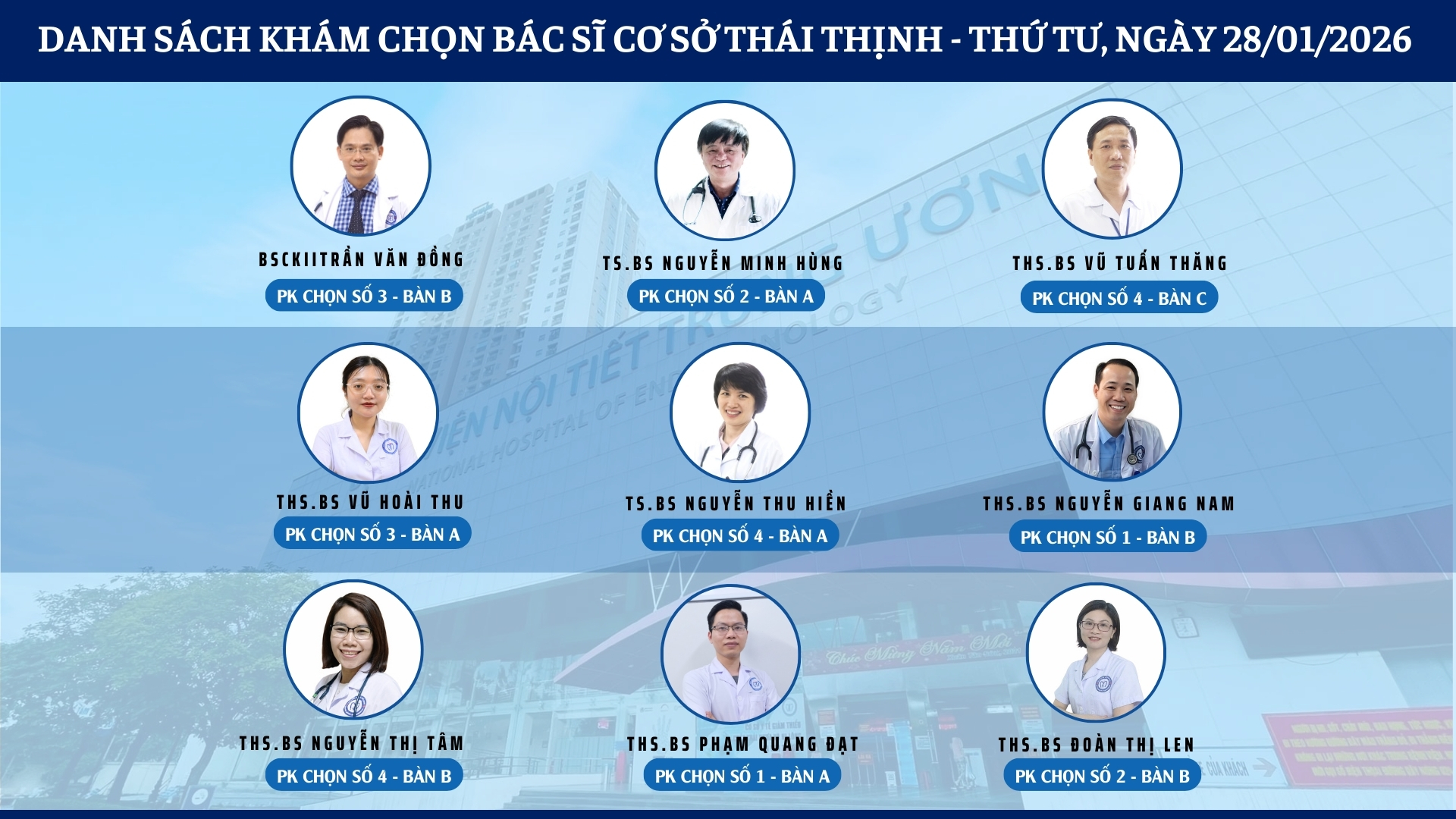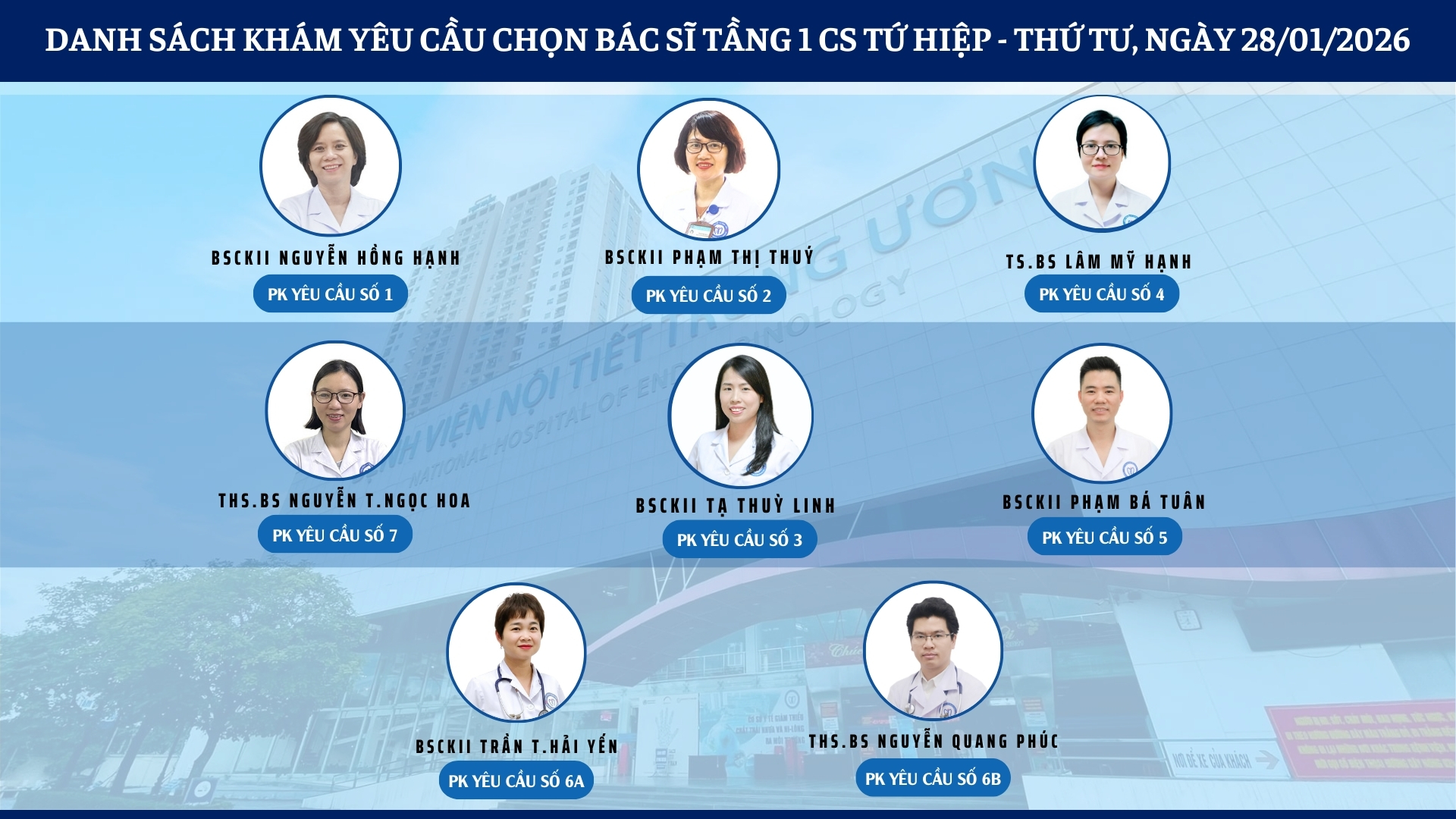 CẬP NHẬT DANH SÁCH DỊCH VỤ BÁC SĨ KHÁM CHỌN TẠI 2 CƠ SỞ TỨ HIỆP VÀ THÁI THỊNH