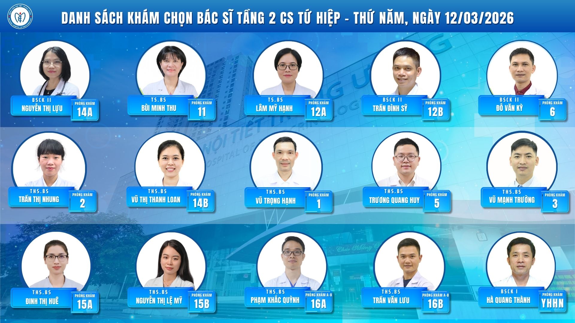 CẬP NHẬT DANH SÁCH DỊCH VỤ BÁC SĨ KHÁM CHỌN TẠI CƠ SỞ TỨ HIỆP