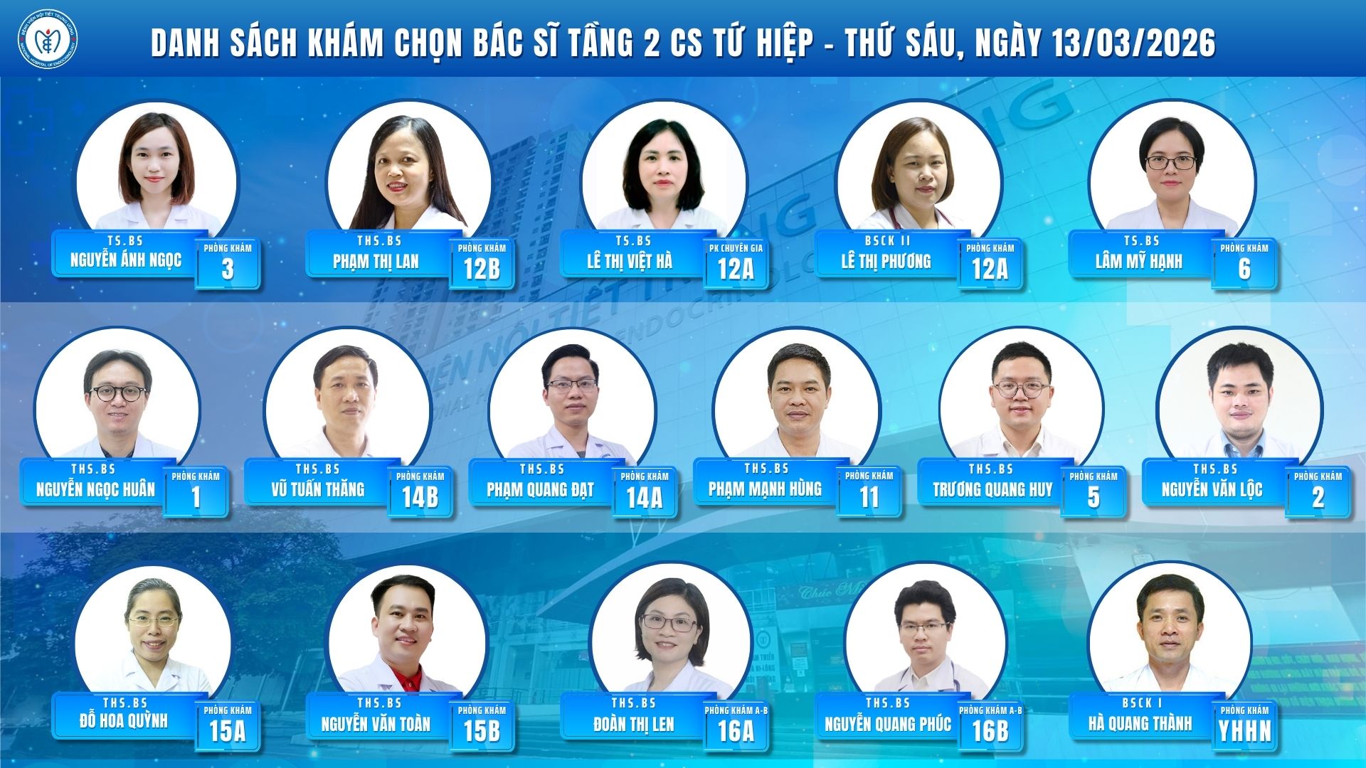 CẬP NHẬT DANH SÁCH DỊCH VỤ BÁC SĨ KHÁM CHỌN TẠI CƠ SỞ TỨ HIỆP