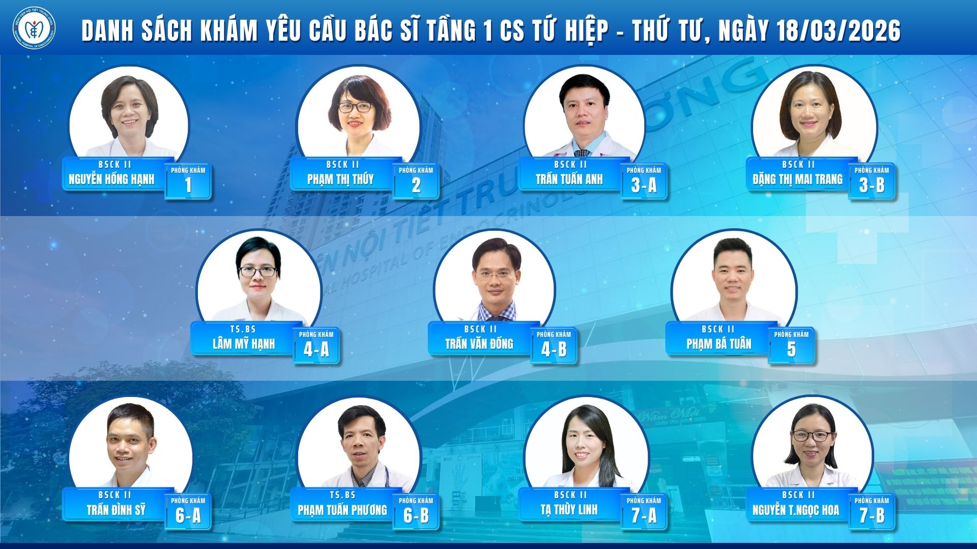 CẬP NHẬT DANH SÁCH DỊCH VỤ BÁC SĨ KHÁM CHỌN TẠI CƠ SỞ TỨ HIỆP