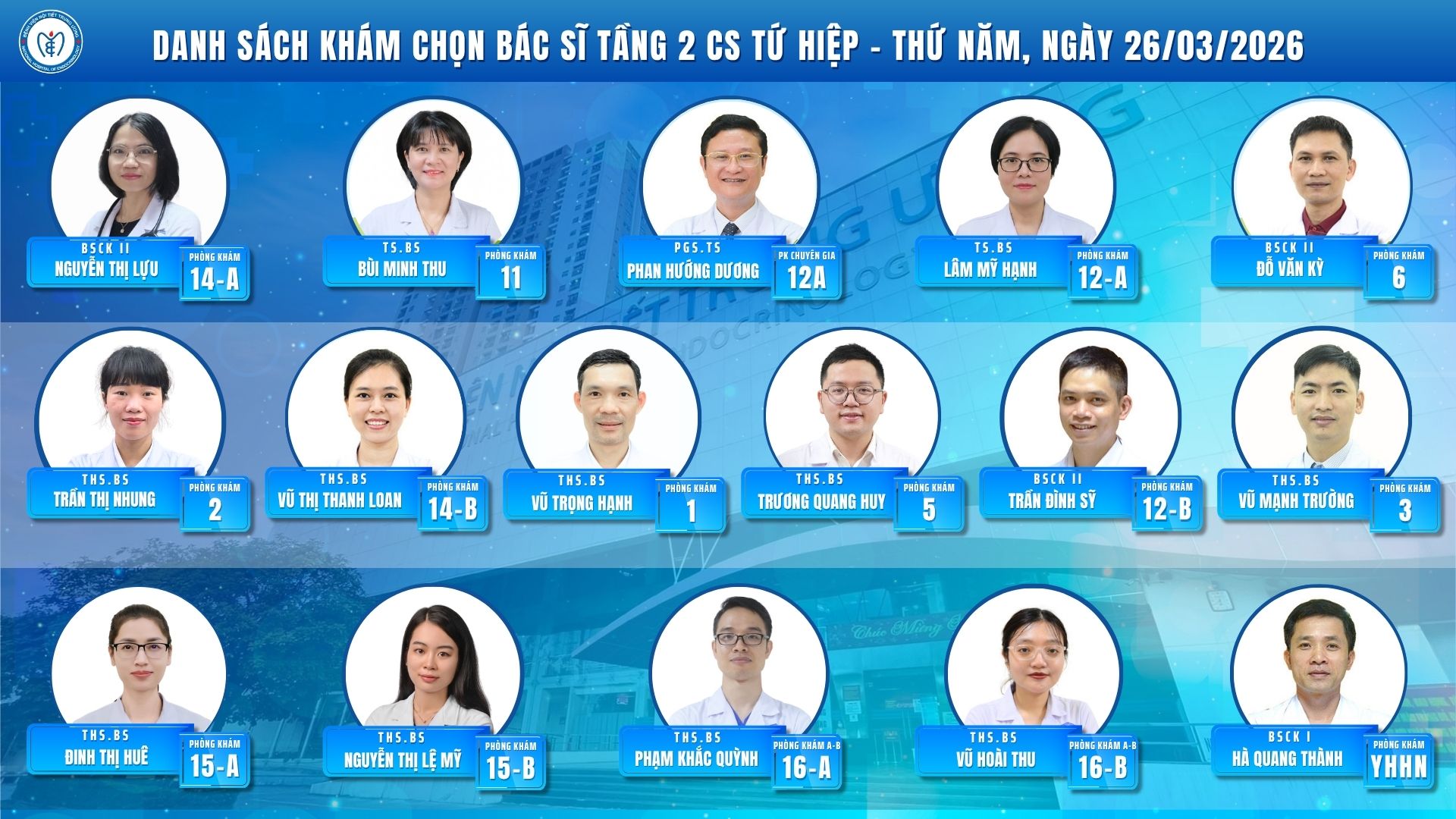 CẬP NHẬT DANH SÁCH DỊCH VỤ BÁC SĨ KHÁM CHỌN TẠI CƠ SỞ TỨ HIỆP