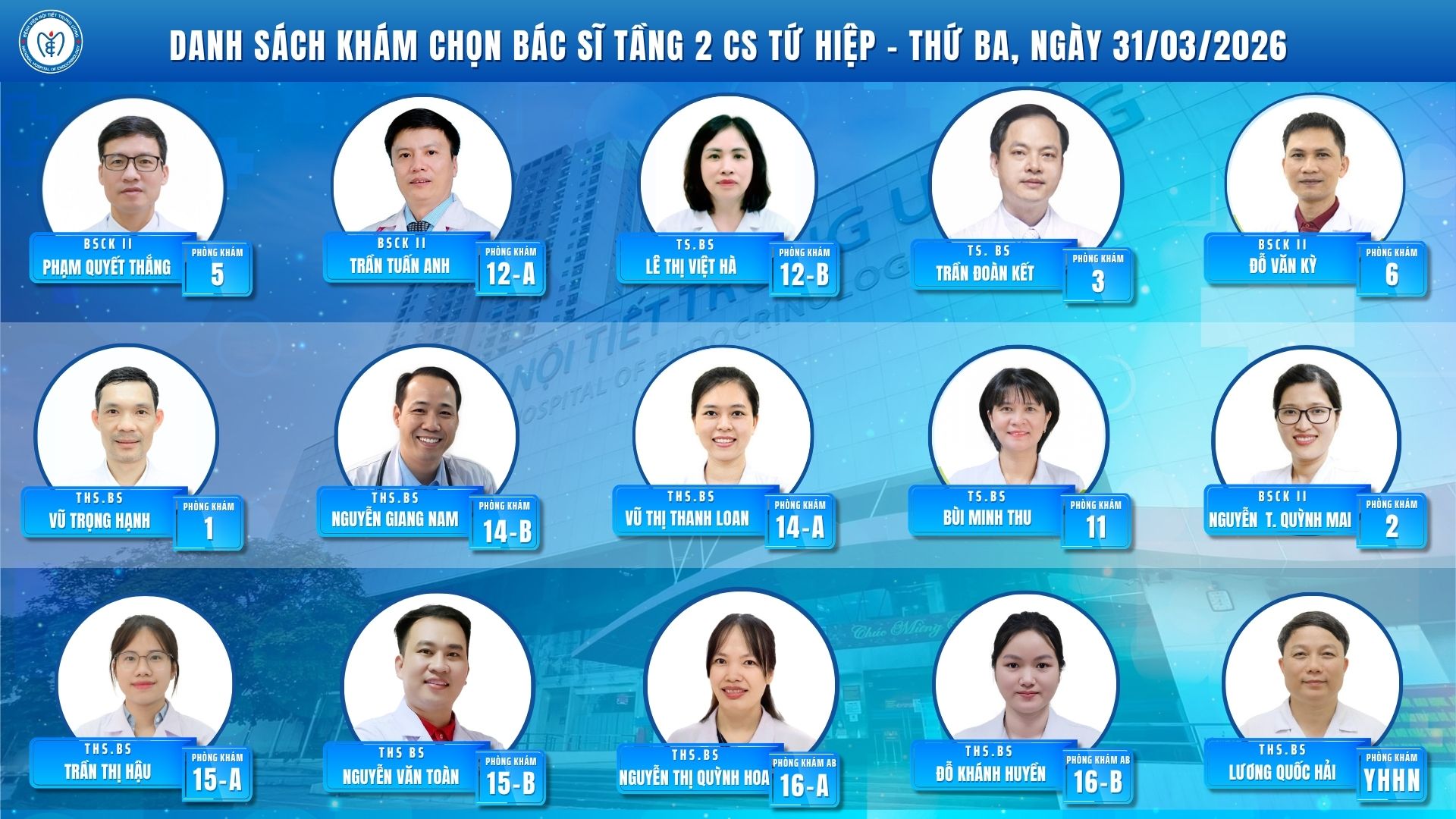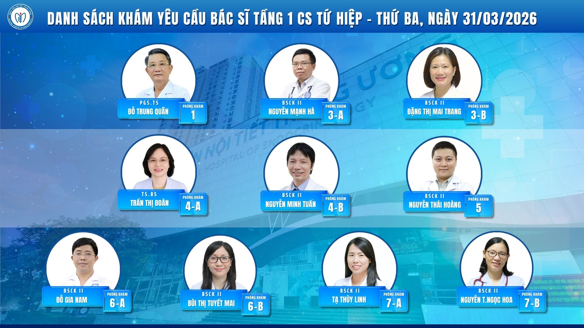 CẬP NHẬT DANH SÁCH DỊCH VỤ BÁC SĨ KHÁM CHỌN TẠI CƠ SỞ TỨ HIỆP