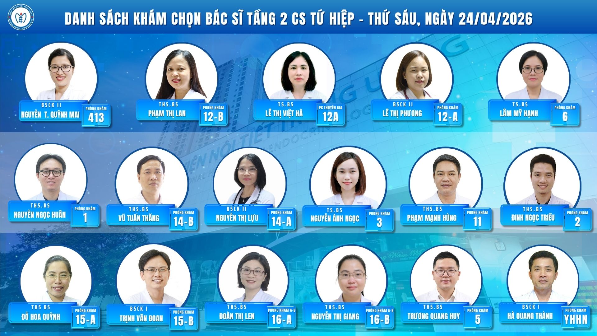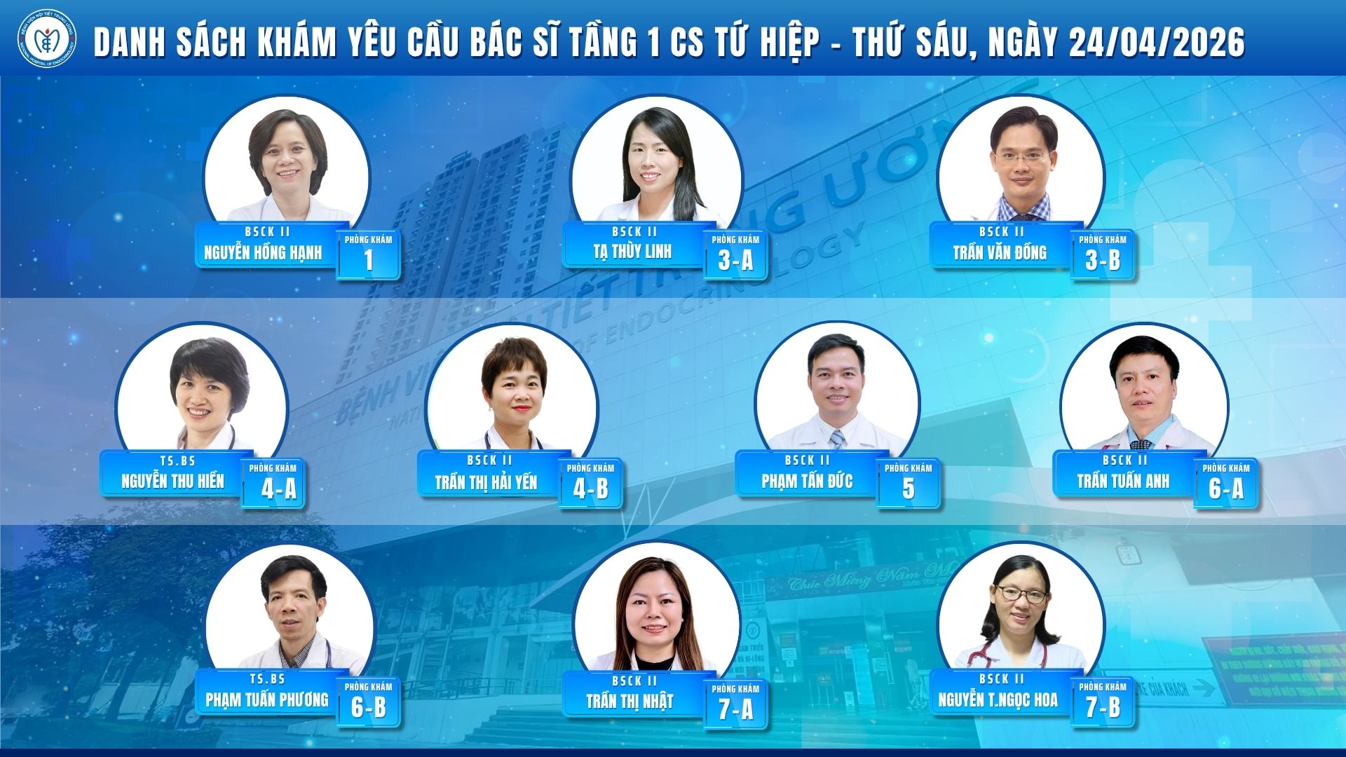 CẬP NHẬT DANH SÁCH DỊCH VỤ BÁC SĨ KHÁM CHỌN TẠI CƠ SỞ TỨ HIỆP