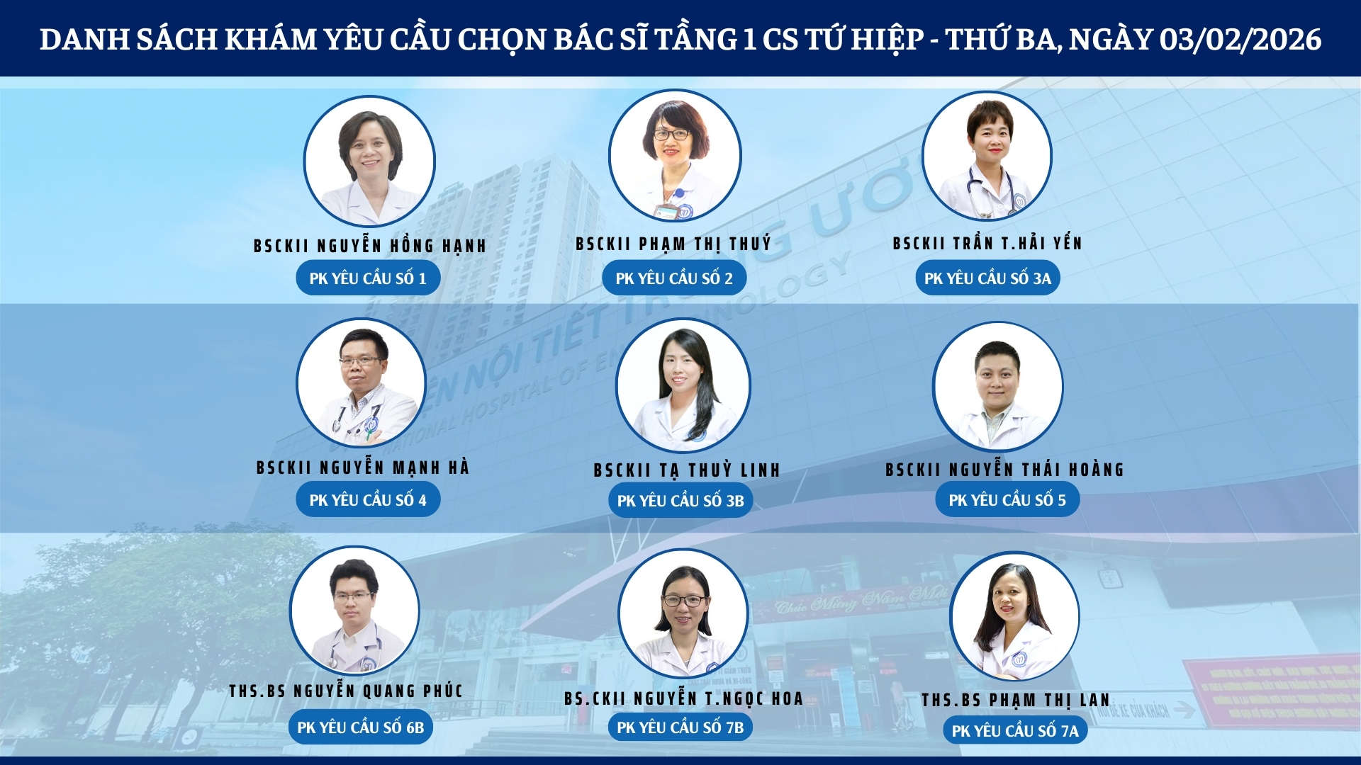 CẬP NHẬT DANH SÁCH DỊCH VỤ BÁC SĨ KHÁM CHỌN TẠI CƠ SỞ TỨ HIỆP