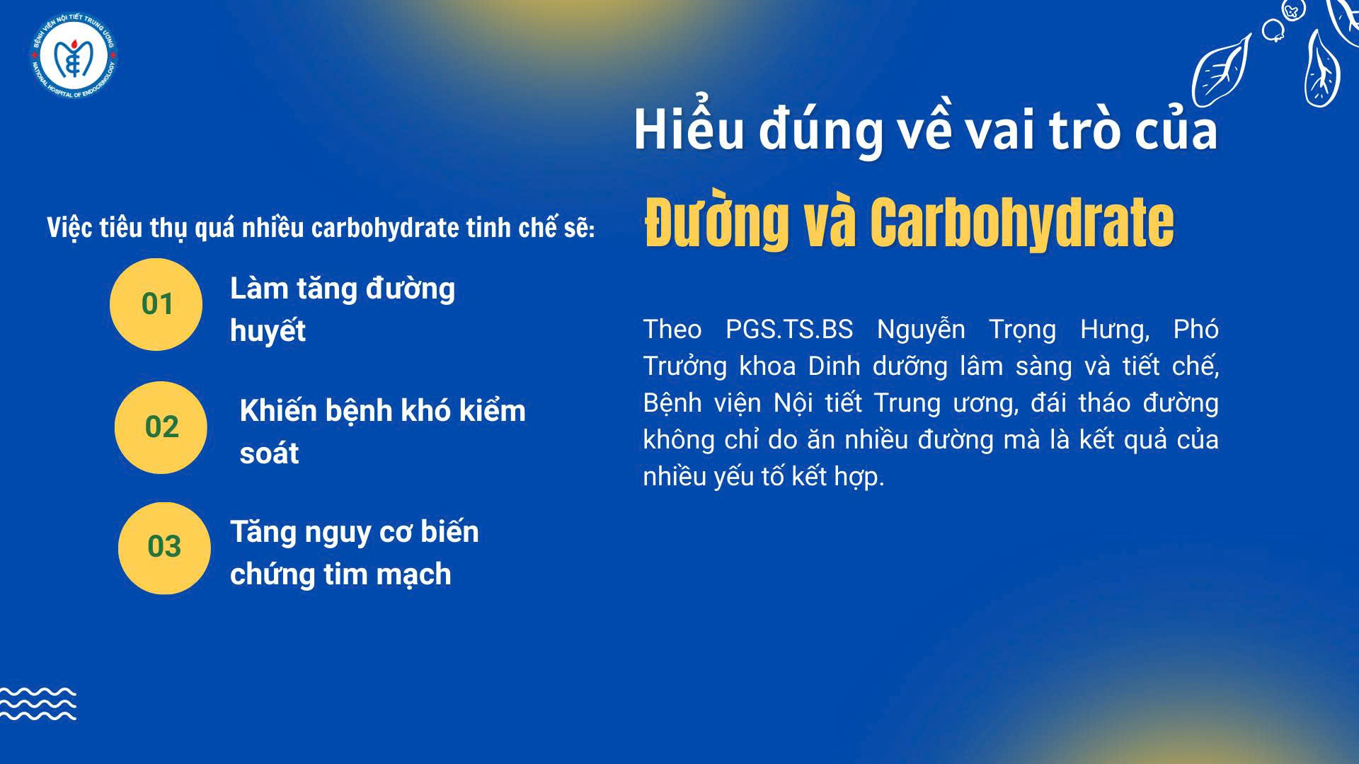 Theo PGS.TS.BS Nguyễn Trọng Hưng, Phó Trưởng khoa Dinh dưỡng lâm sàng và tiết chế, Bệnh viện Nội tiết Trung ương, đái tháo đường không chỉ do ăn nhiều đường mà là kết quả của nhiều yếu tố kết hợp. Tuy nhiên, việc tiêu thụ quá nhiều carbohydrate tinh chế sẽ: