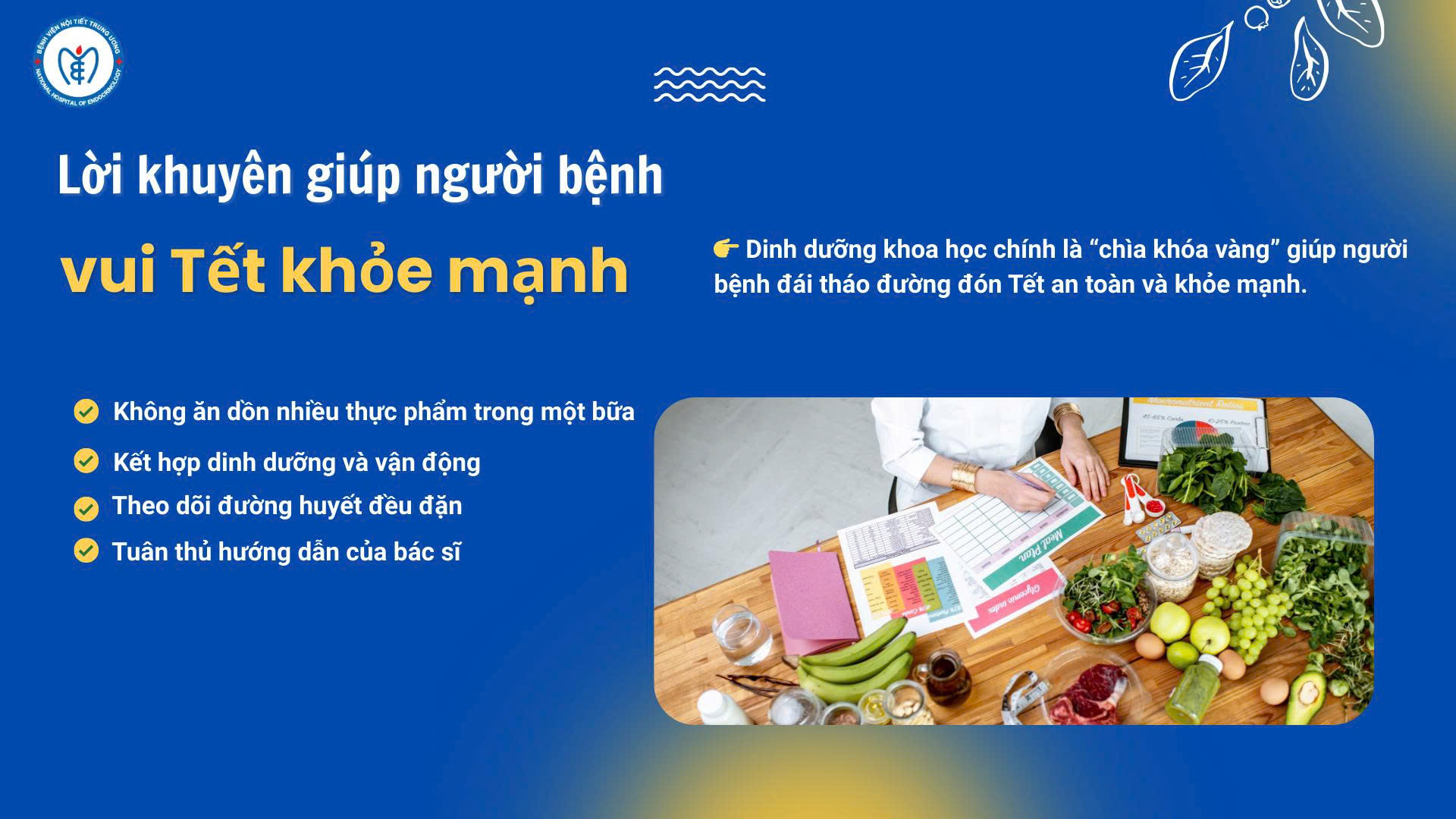 Dinh dưỡng khoa học chính là “chìa khóa vàng” giúp người bệnh đái tháo đường đón Tết an toàn và khỏe mạnh.