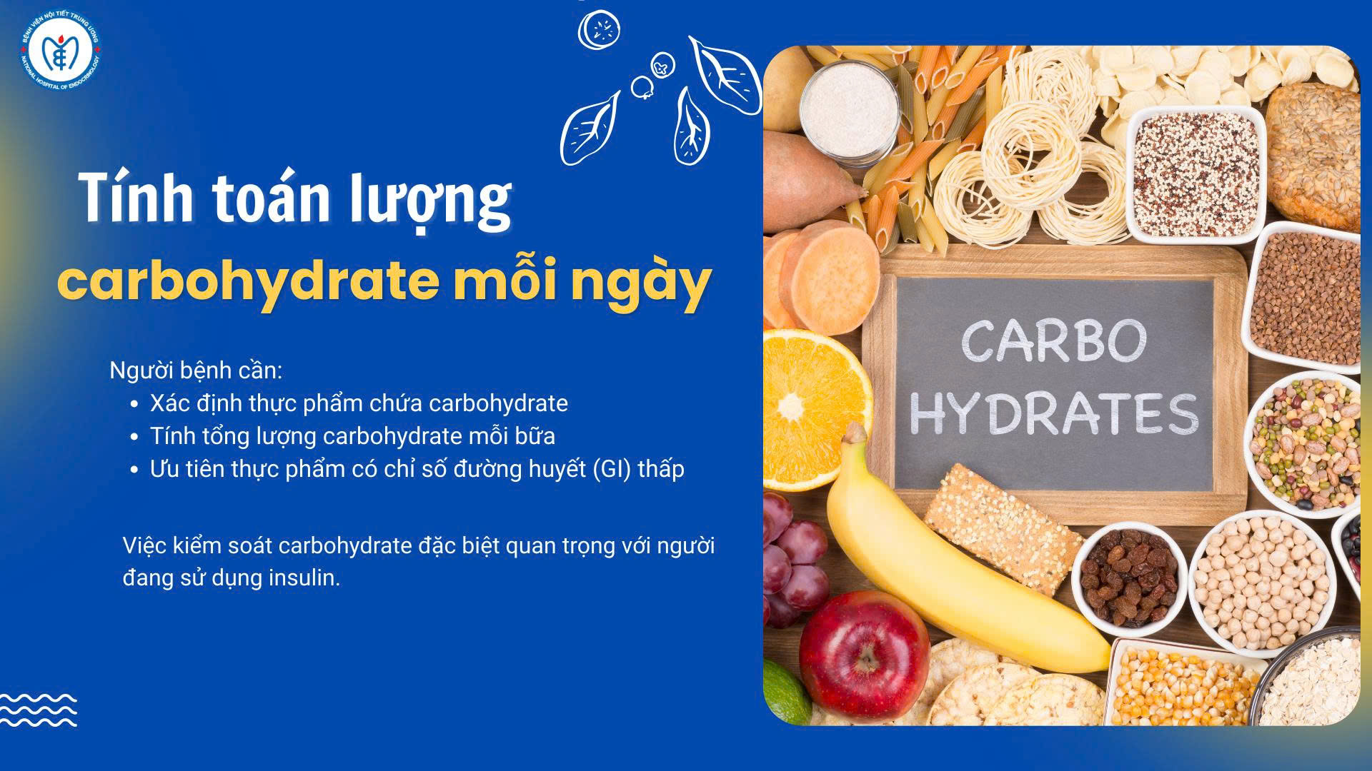 Việc kiểm soát carbohydrate đặc biệt quan trọng với người đang sử dụng insulin.