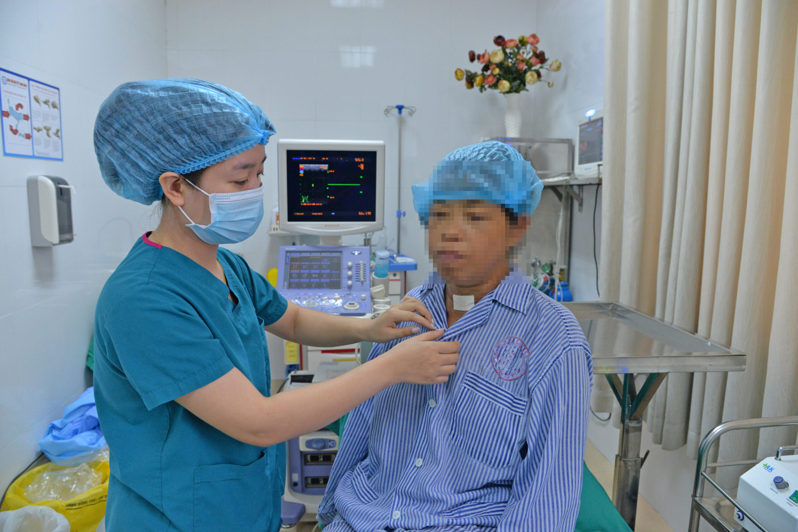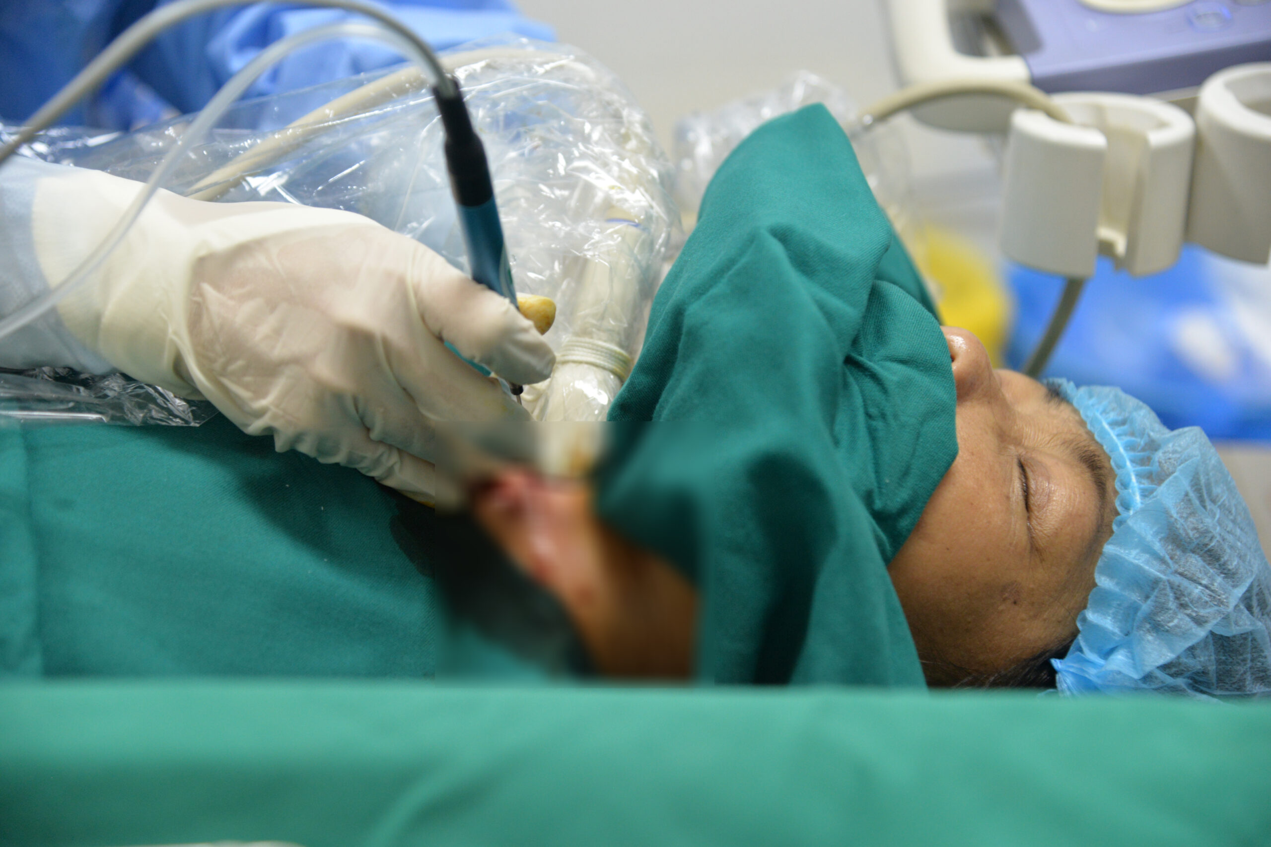 Theo TS.BS Nguyễn Thị Ánh Ngọc, Khoa Phẫu thuật tuyến giáp: “Trên cơ sở phân tích lâm sàng và đánh giá nguy cơ, bệnh nhân M được chỉ định điều trị bằng phương pháp đốt sóng cao tần (Radiofrequency Ablation – RFA). Đây là một thủ thuật ít xâm lấn, sử dụng năng lượng sóng cao tần để tiêu hủy mô tuyến cận giáp tăng sinh. Thủ thuật được thực hiện dưới hướng dẫn siêu âm, chỉ cần gây tê tại chỗ, bệnh nhân hoàn toàn tỉnh táo trong suốt quá trình thực hiện (khoảng 30 phút).”