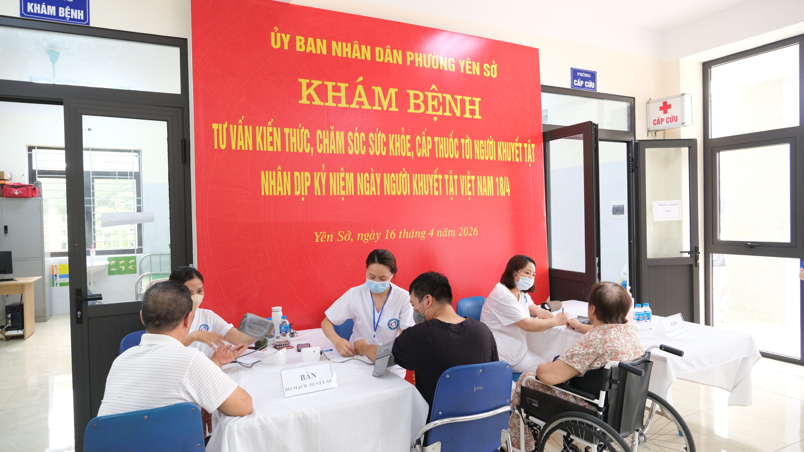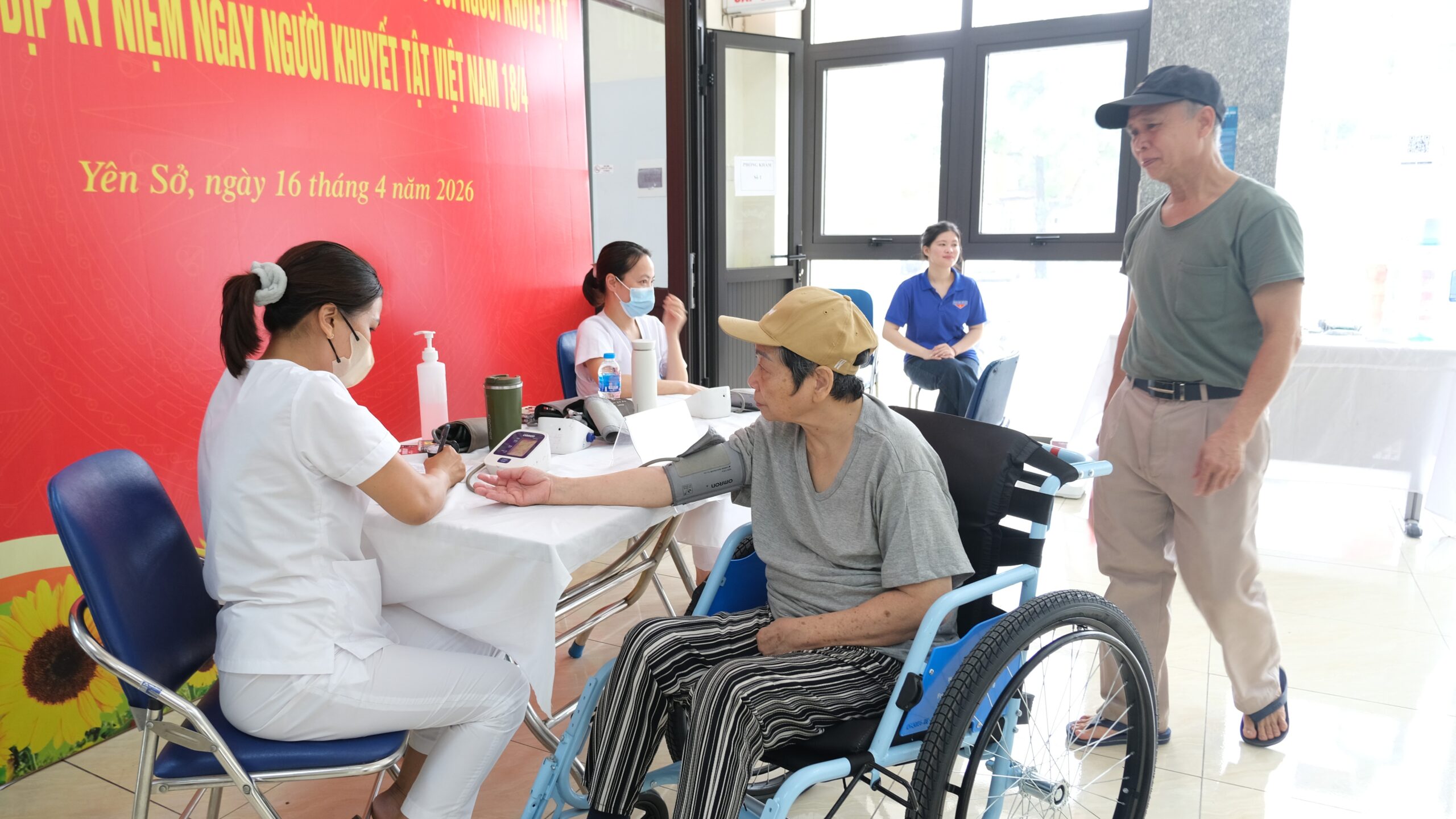 Hưởng ứng Ngày Người khuyết tật Việt Nam, sáng ngày 16/4/2026, tại Trạm Y tế phường Yên Sở (đường Tứ Hiệp, phường Yên Sở, thành phố Hà Nội), Đoàn Thanh niên Bệnh viện Nội tiết Trung ương đã tích cực tham gia chương trình khám sức khỏe, sàng lọc và tư vấn điều trị dành cho người khuyết tật trên địa bàn.