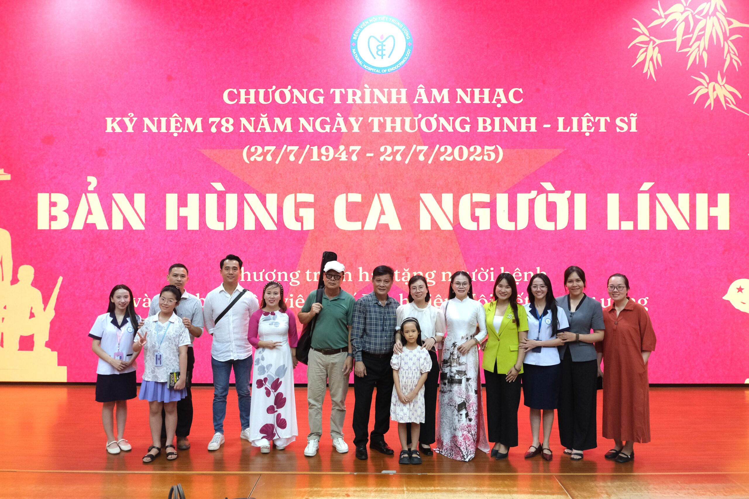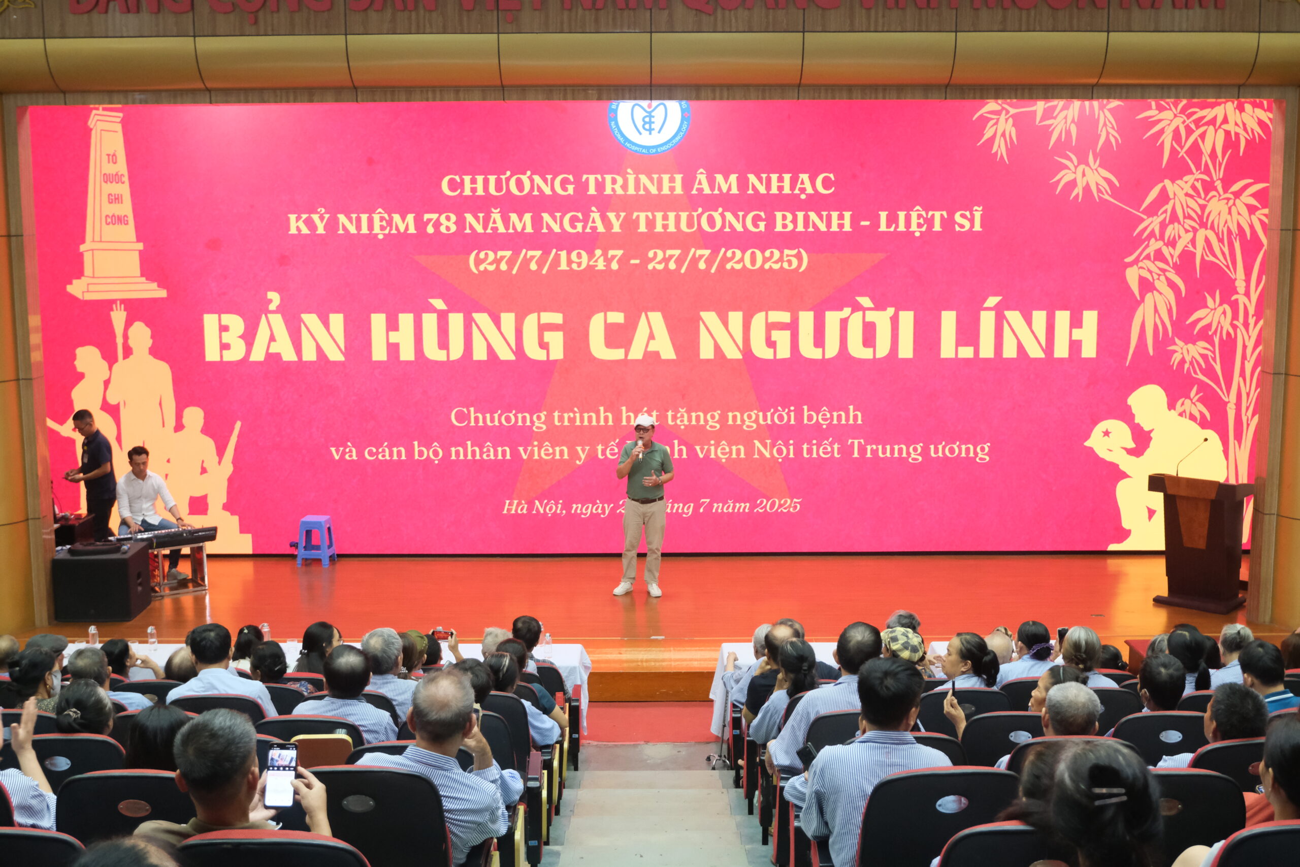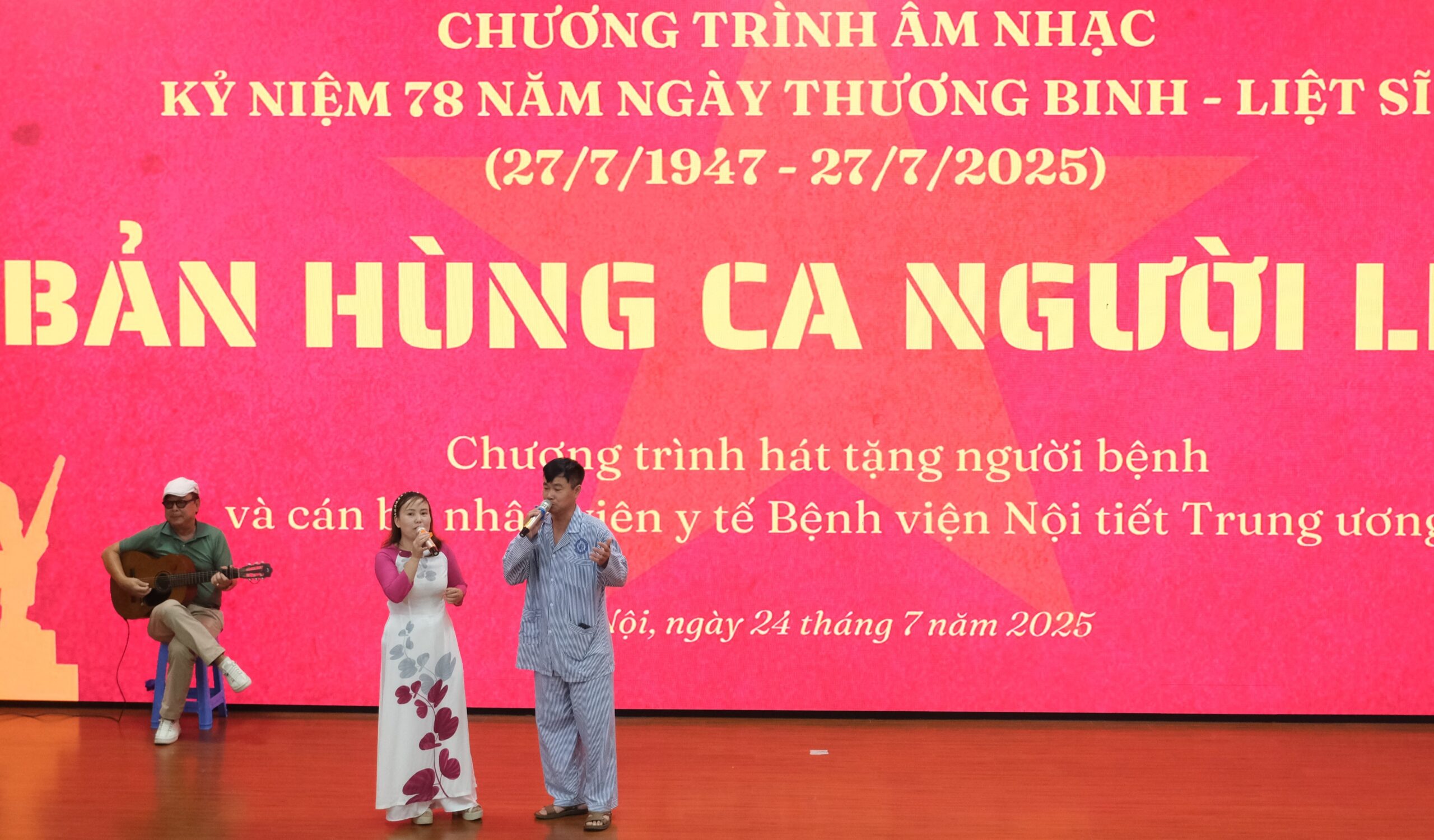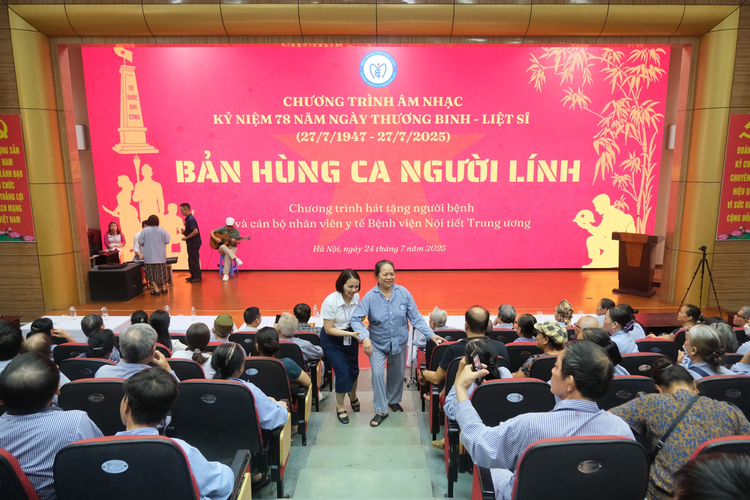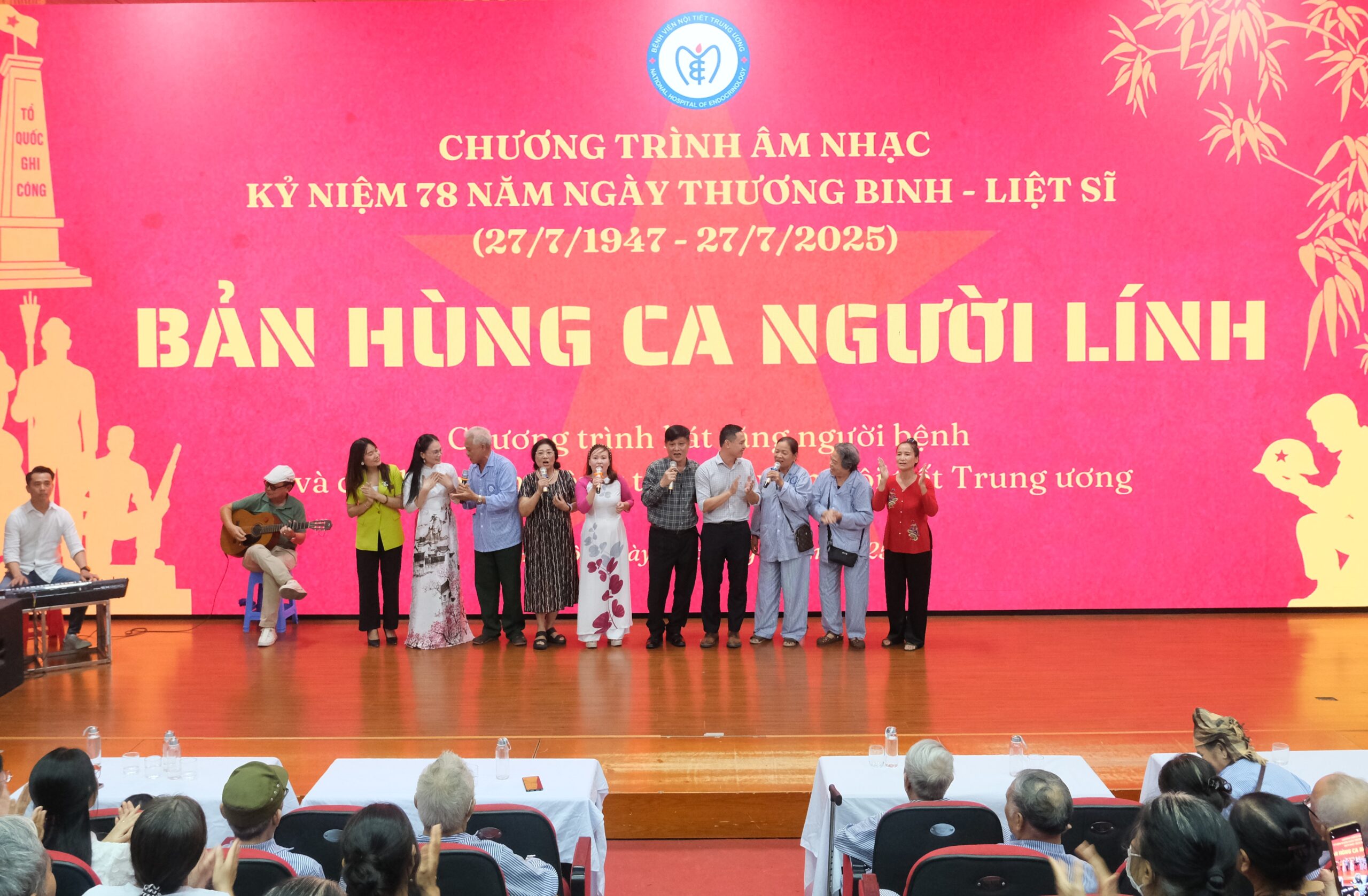 Nhân kỷ niệm 78 năm Ngày Thương binh – Liệt sĩ (27/7), chương trình âm nhạc với chủ đề “Bản hùng ca người lính” đã được tổ chức, không chỉ dành cho cán bộ y tế mà còn gửi tặng người bệnh và người nhà. Chương trình đã nhận được sự hưởng ứng rất nhiệt tình từ người bệnh. Bên cạnh phần biểu diễn của các ca sĩ, nhạc công, người bệnh cũng thể hiện khả năng ca hát của mình bằng các ca khúc sâu lắng, đầy cảm xúc trên sân khấu một cách rất tự nhiên duyên dáng. Những giai điệu thiêng liêng ấy không chỉ gợi nhớ về tình yêu quê hương, lòng biết ơn thế hệ đi trước, mà còn tạo nên sự gắn bó ấm áp giữa người bệnh, bệnh viện và cộng đồng. Âm nhạc có thể không chữa lành bệnh, nhưng có khả năng tạo nên những cảm xúc tích cực, tinh thần lạc quan đối với người bệnh, điều rất quan trọng việc giúp đẩy lùi bệnh tật cho các người bệnh.