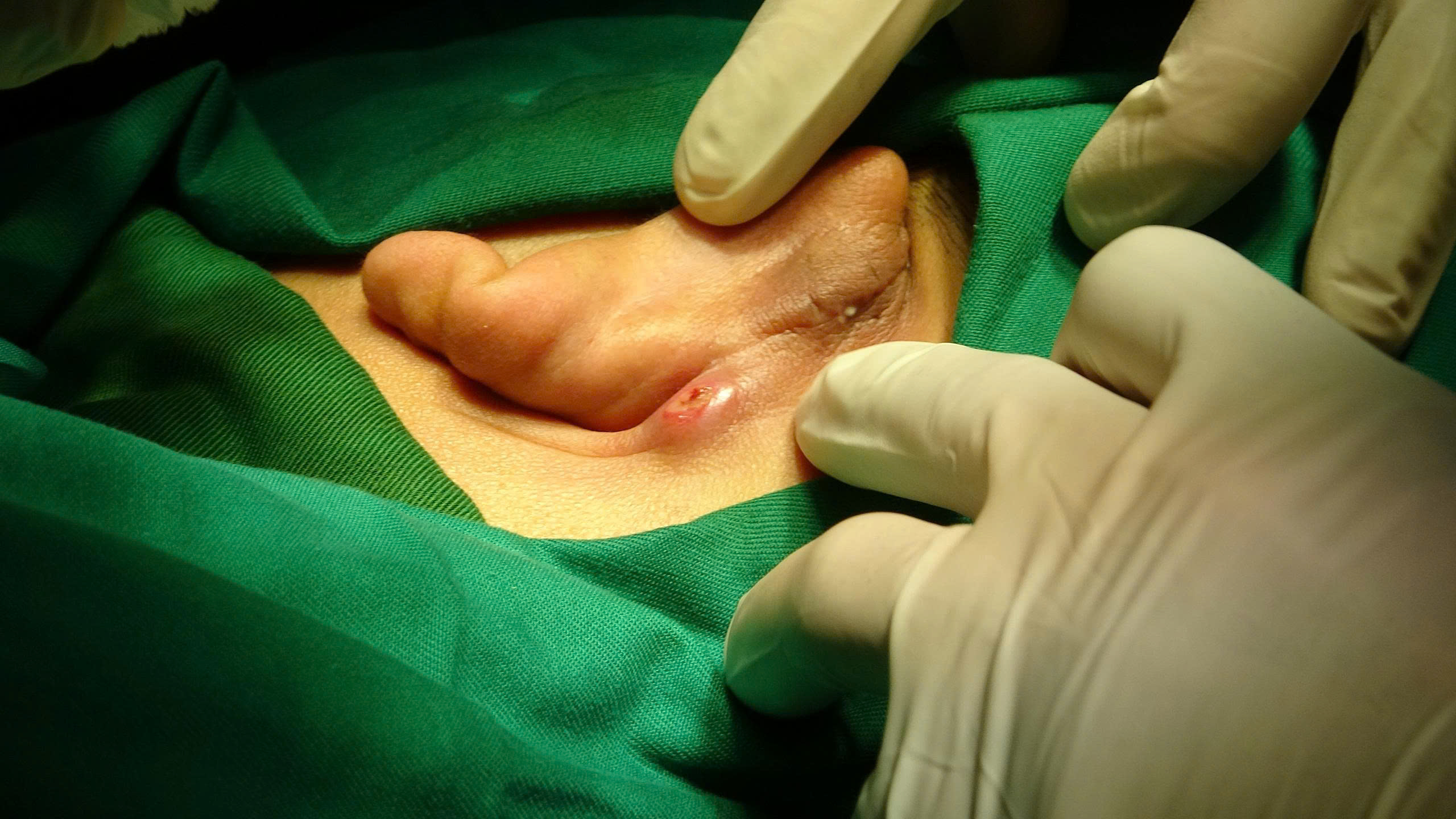 Theo ThS.BS. Hà Mạnh Hùng – Phụ trách Liên khoa Mắt – Tai Mũi Họng – Răng Hàm Mặt cho biết: theo khai thác thông tin được biết bệnh nhân H.H.N, nam (38 tuổi sinh sống tại Kim Sơn, Ninh Bình) mới thực hiện tiểu phẫu bóc lấy u vành tai trái không lâu tại một đơn vị y tế khác. Tuy nhiên sau mổ, rãnh sau vành tai trái trên nền sẹo cũ của bệnh nhân xuất hiện sưng nề rò, có dịch mù trắng đục chảy ra. Da sụn vành tai cứng chắc. Cách vào viện 1 tuần, vết mổ vành tai trái sưng to hơn, chảy dịch, sốt, đau tức khiến bệnh nhân vô cùng khó chịu và quyết định nhập viện Bệnh viện Nội tiết Trung ương để kiểm tra lại.