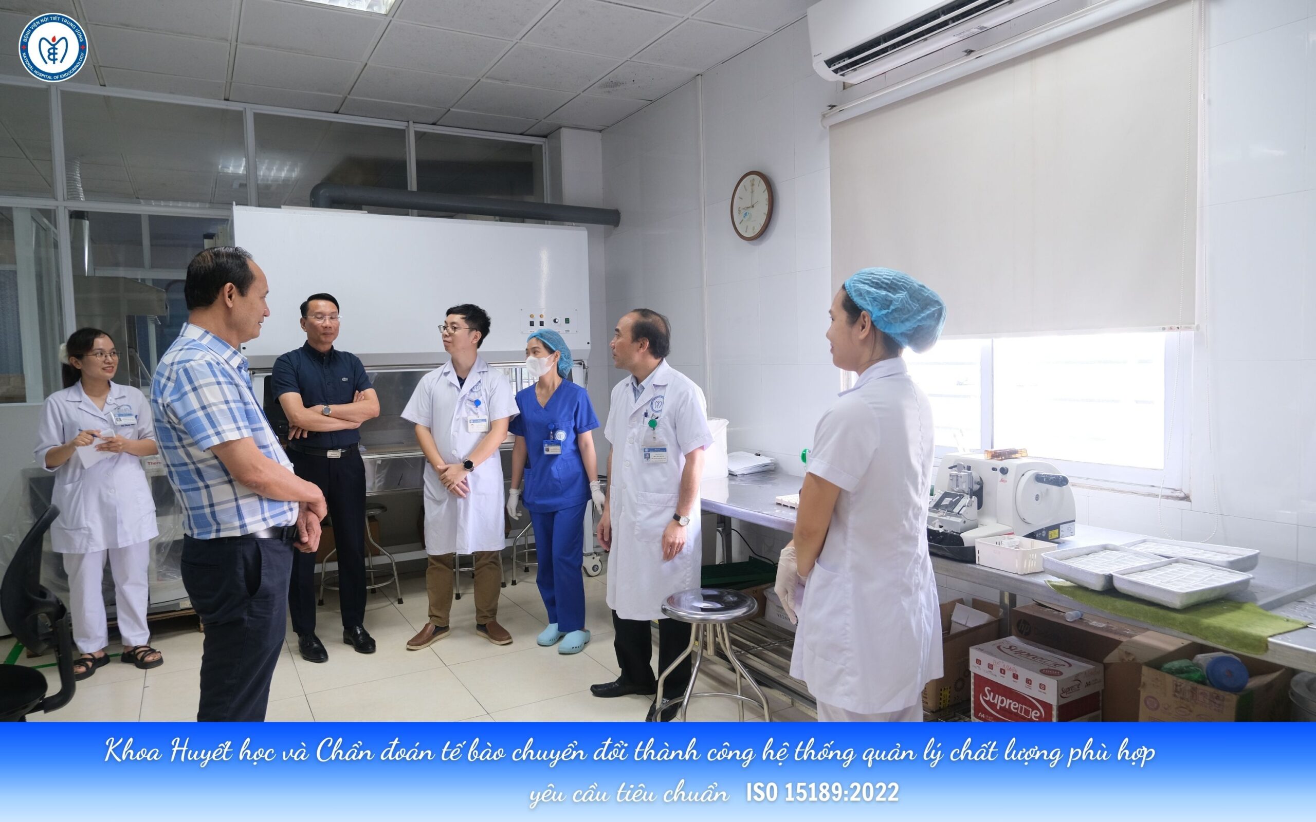 Khoa Huyết học và Chẩn đoán tế bào thuộc Bệnh viện Nội tiết Trung ương đã chuyển đổi thành công hệ thống quản lý chất lượng phù hợp yêu cầu tiêu chuẩn ISO 15189:2022 và ARM 03, đáp ứng đầy đủ các tiêu chí quốc tế về năng lực phòng xét nghiệm y tế. Đây là bộ tiêu chuẩn có ý nghĩa quan trọng, giúp đảm bảo độ chính xác, tin cậy và nhất quán của kết quả xét nghiệm; đồng thời nâng cao hiệu quả quản lý, giảm thiểu sai sót và tăng cường niềm tin của người bệnh cũng như các đối tác chuyên môn.